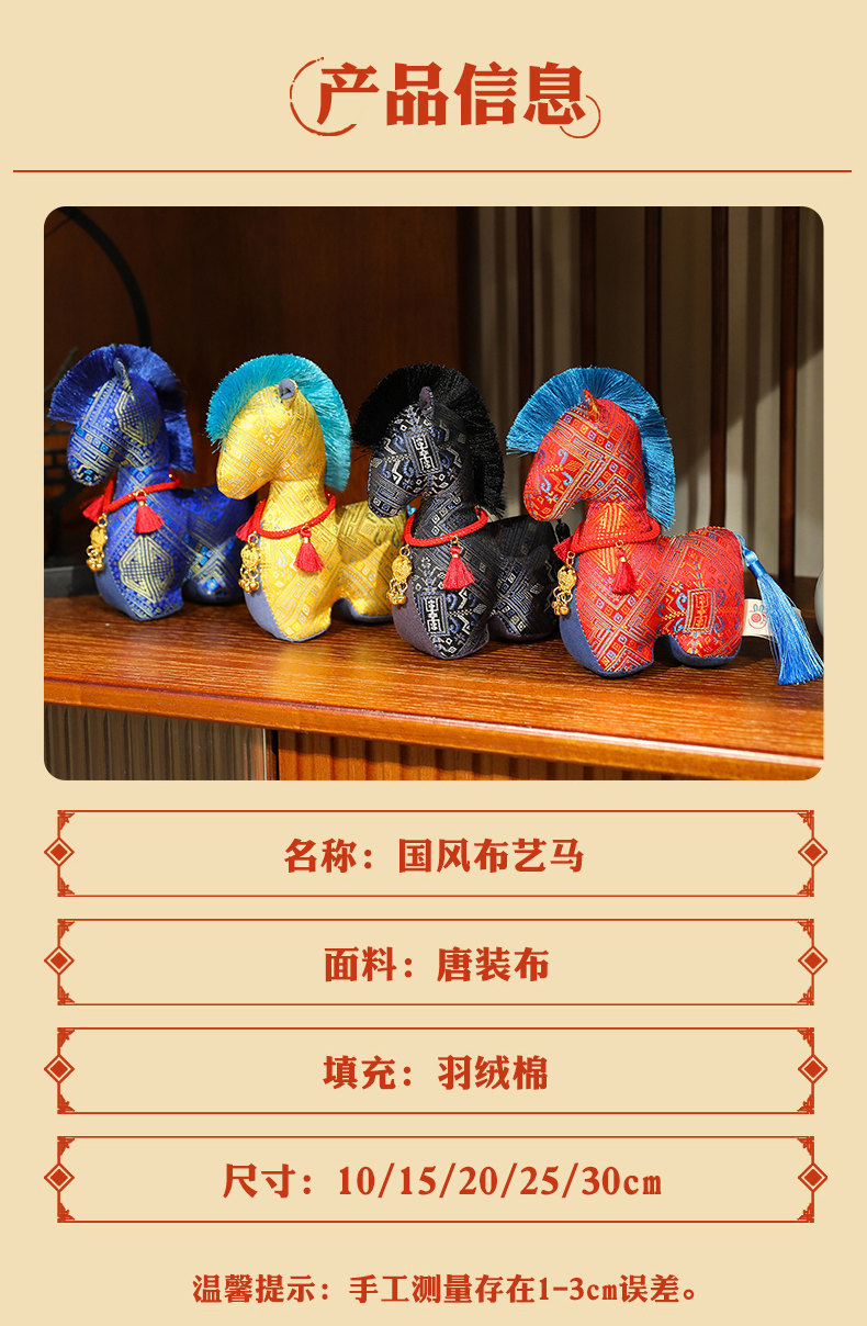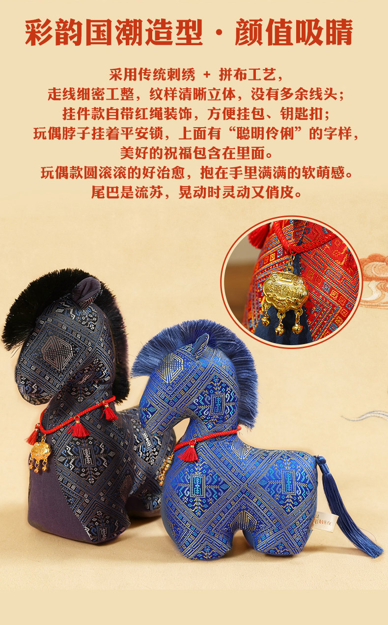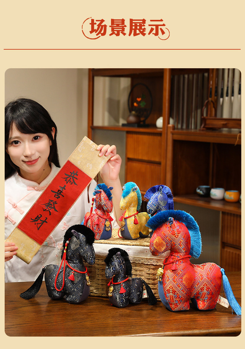 国风马年吉祥物富贵布艺马玩偶创意新年摆件包包挂件公仔年货批发