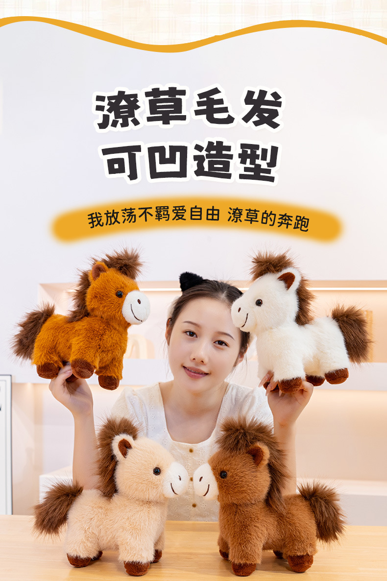 跨境可爱潦草小马驹玩偶马年吉祥物仿真小马毛绒玩具爪机娃娃婚庆