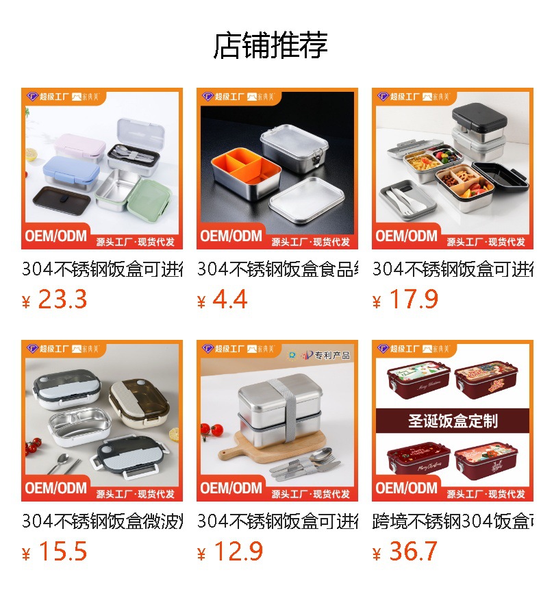 | 饭盒+隔片+沙拉盒 | USD $1.61 | 9999 piece available |
