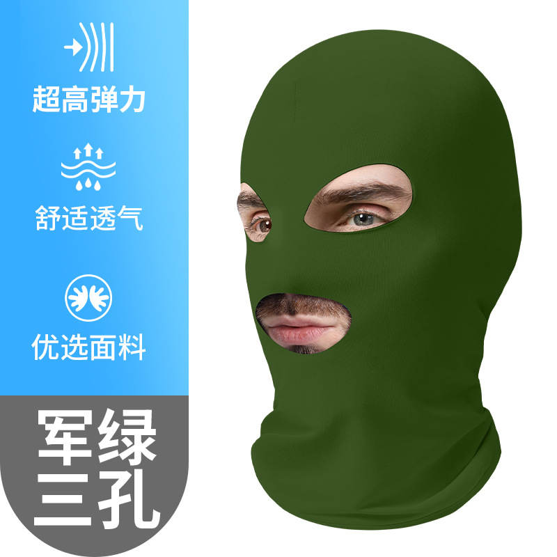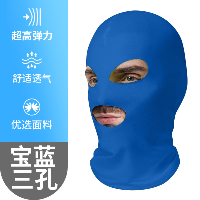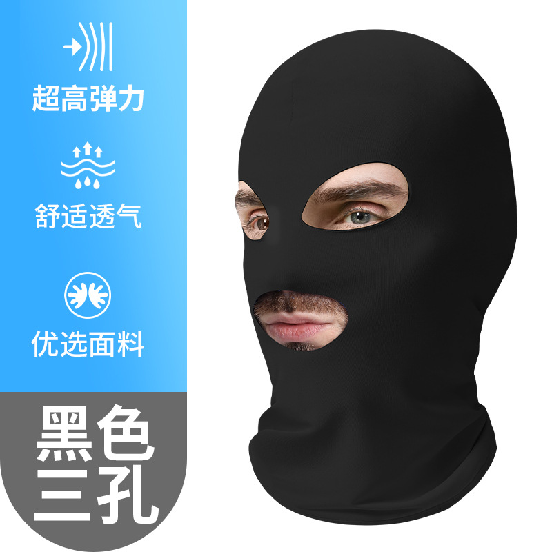 夏季防晒面罩户外运动遮阳速干纯色套头帽自行车骑行冰丝三孔头套