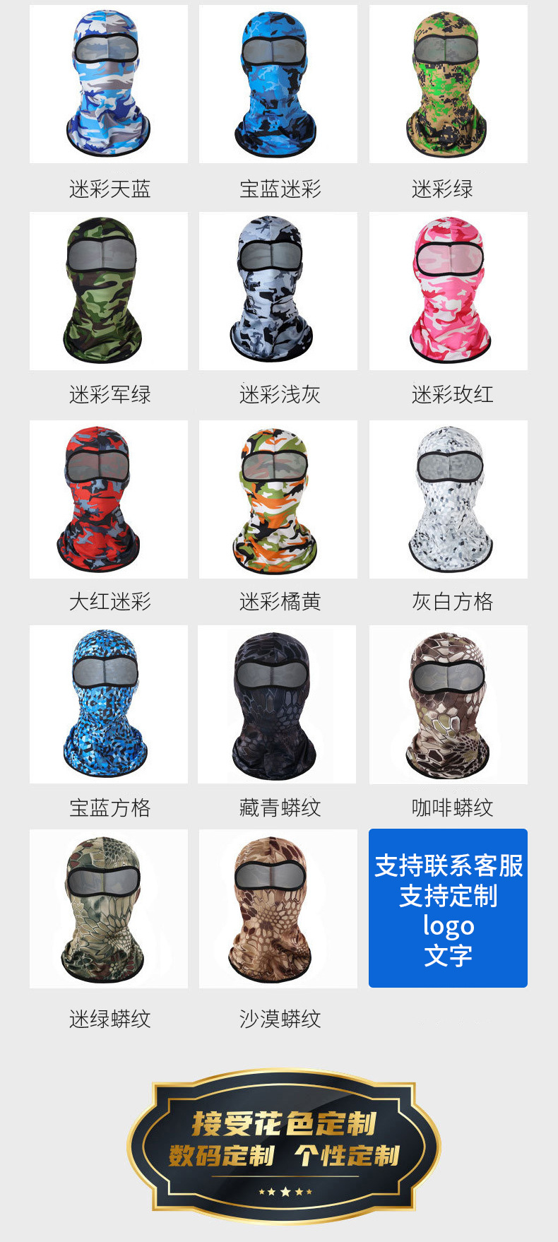 跨境冰丝防晒巴拉克拉法帽户外骑行运动头套护脸多功能套头帽面罩