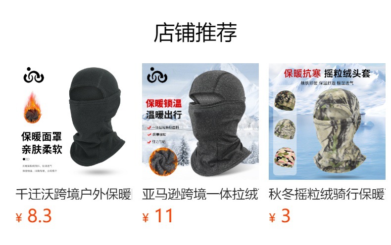 千迁沃跨境保暖头套骑行面罩户外秋冬运动滑雪头盔摩托车帽子内胆