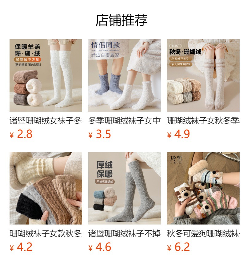 珊瑚绒袜子秋冬女中筒袜不掉毛加绒加厚保暖睡眠袜月子袜地板袜