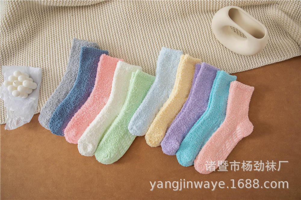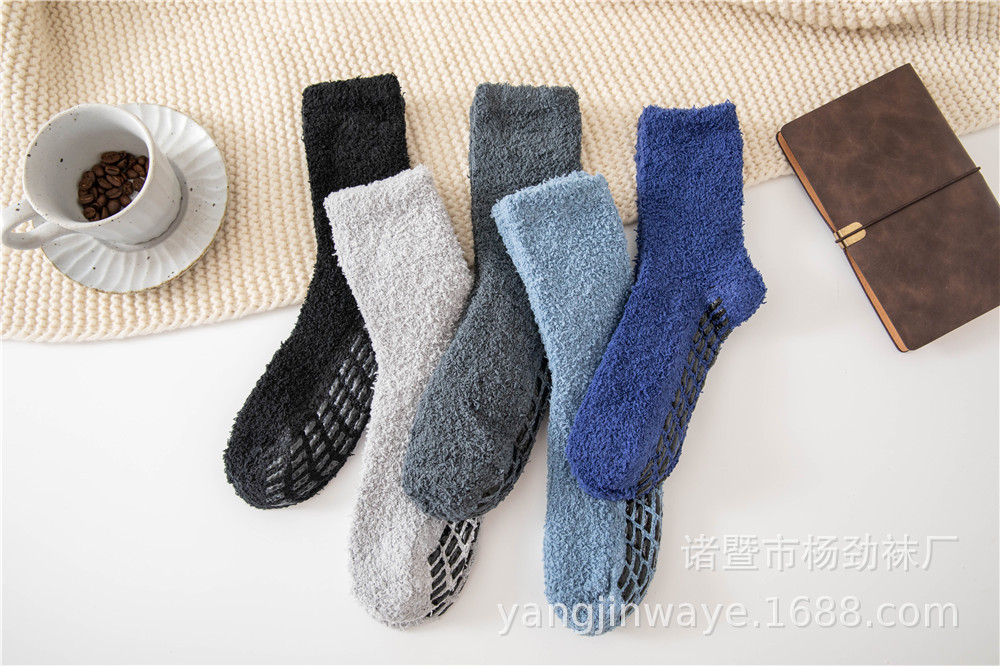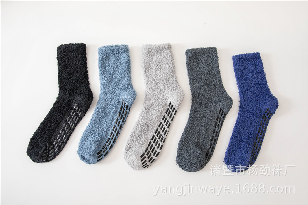 Fuzzy Socks 男士带抓手蓬松拖鞋家居男式毛绒睡袜防滑珊瑚绒袜子