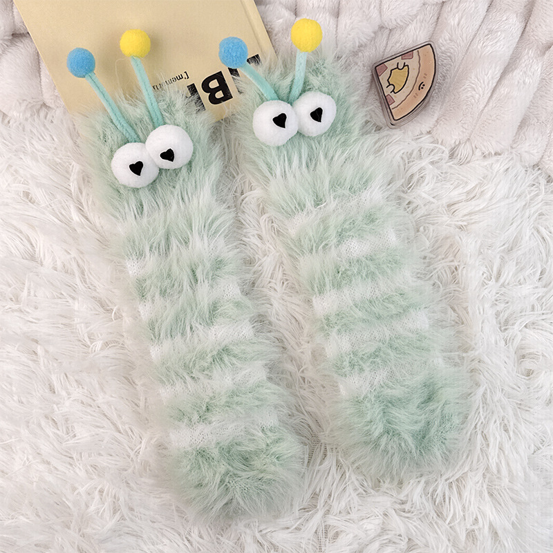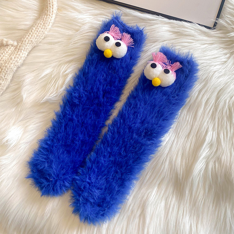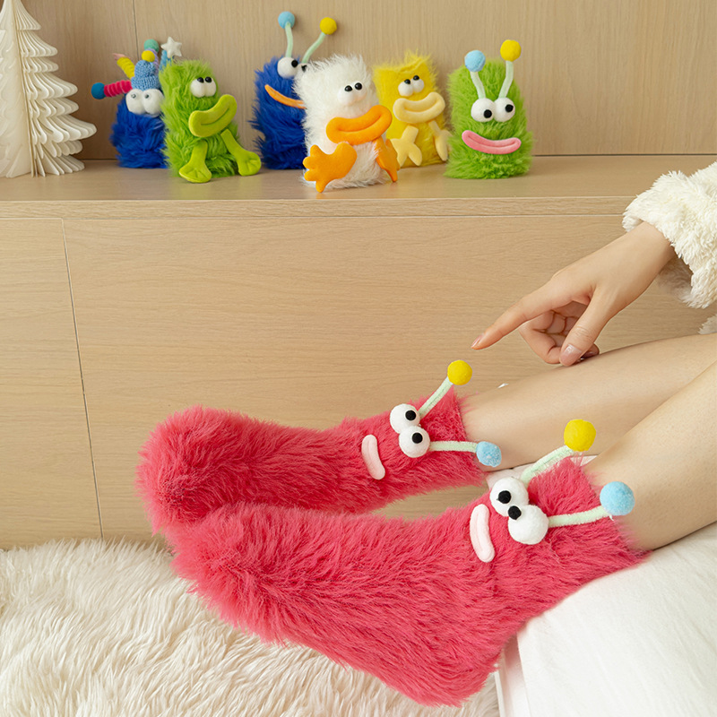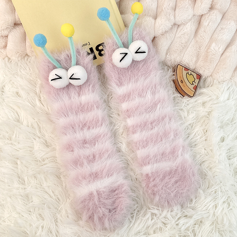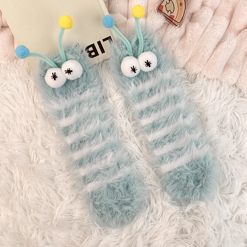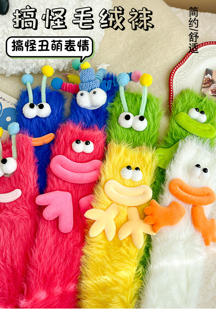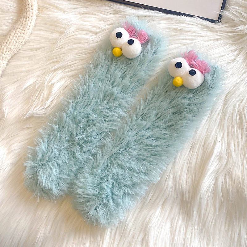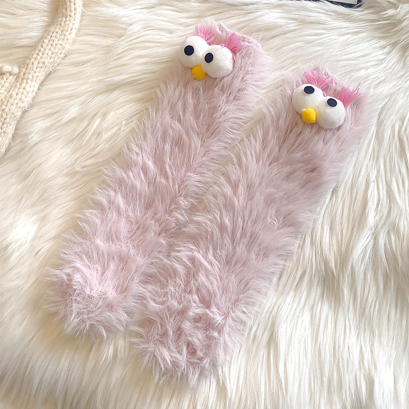 【跨境】水貂绒袜子女日系可爱甜美中筒袜冬季毛绒保暖地板袜搞怪