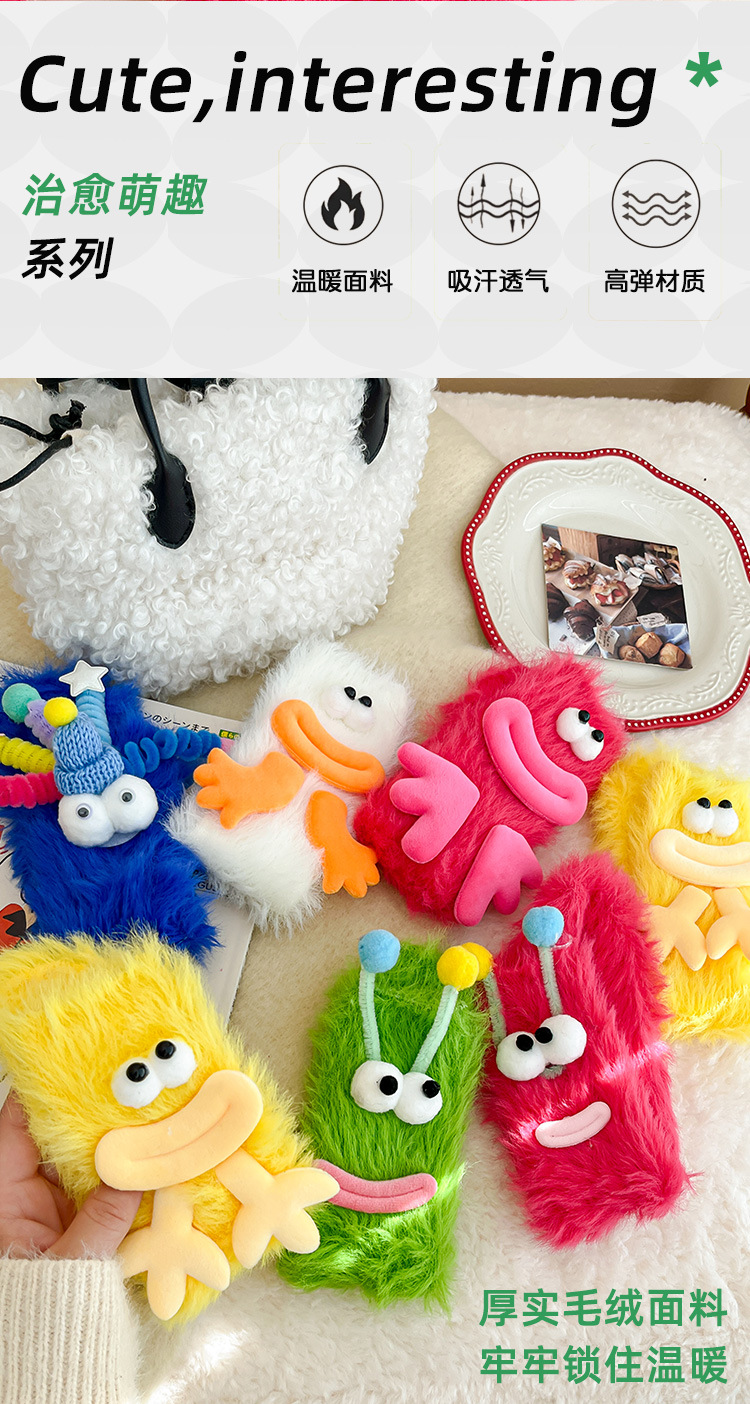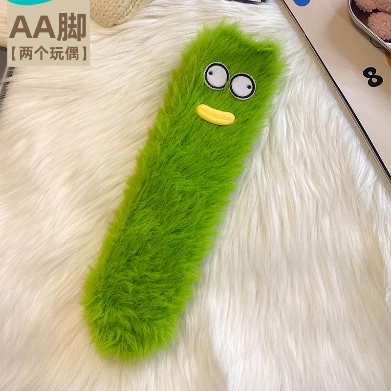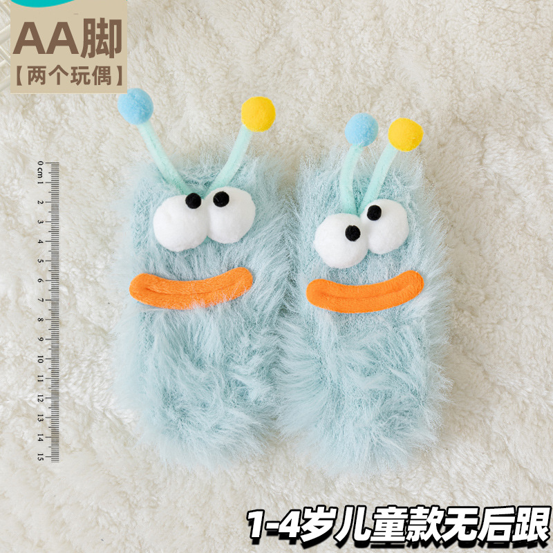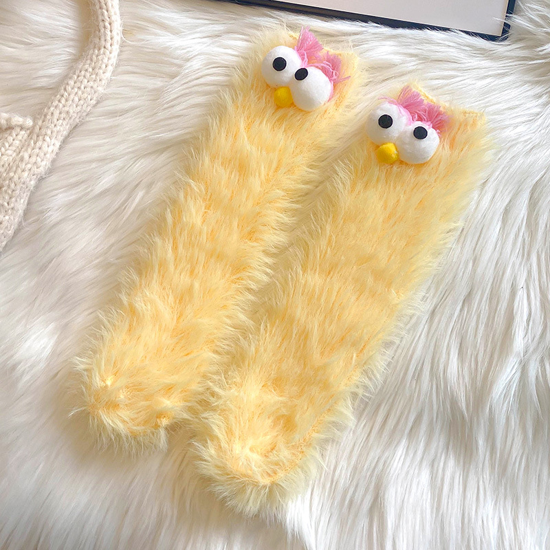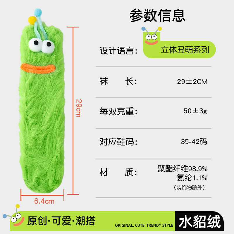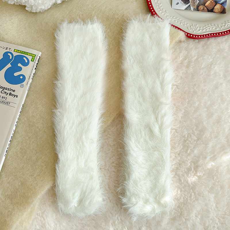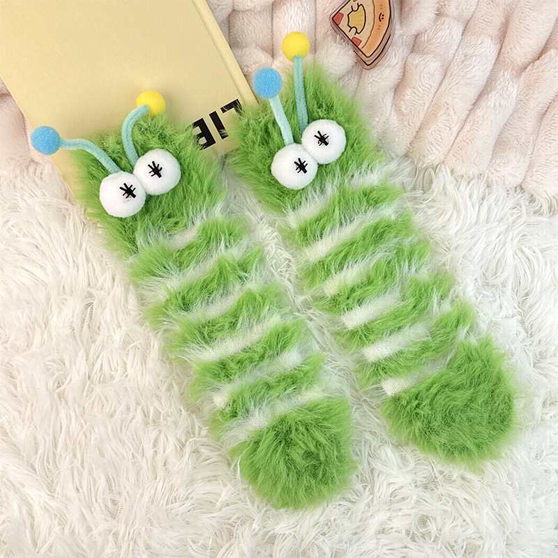 【跨境】水貂绒袜子女日系可爱甜美中筒袜冬季毛绒保暖地板袜搞怪