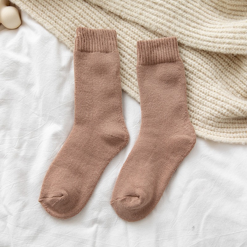 袜子女士秋冬加绒加厚毛圈袜纯色保暖中筒袜月子袜睡眠袜sock袜子