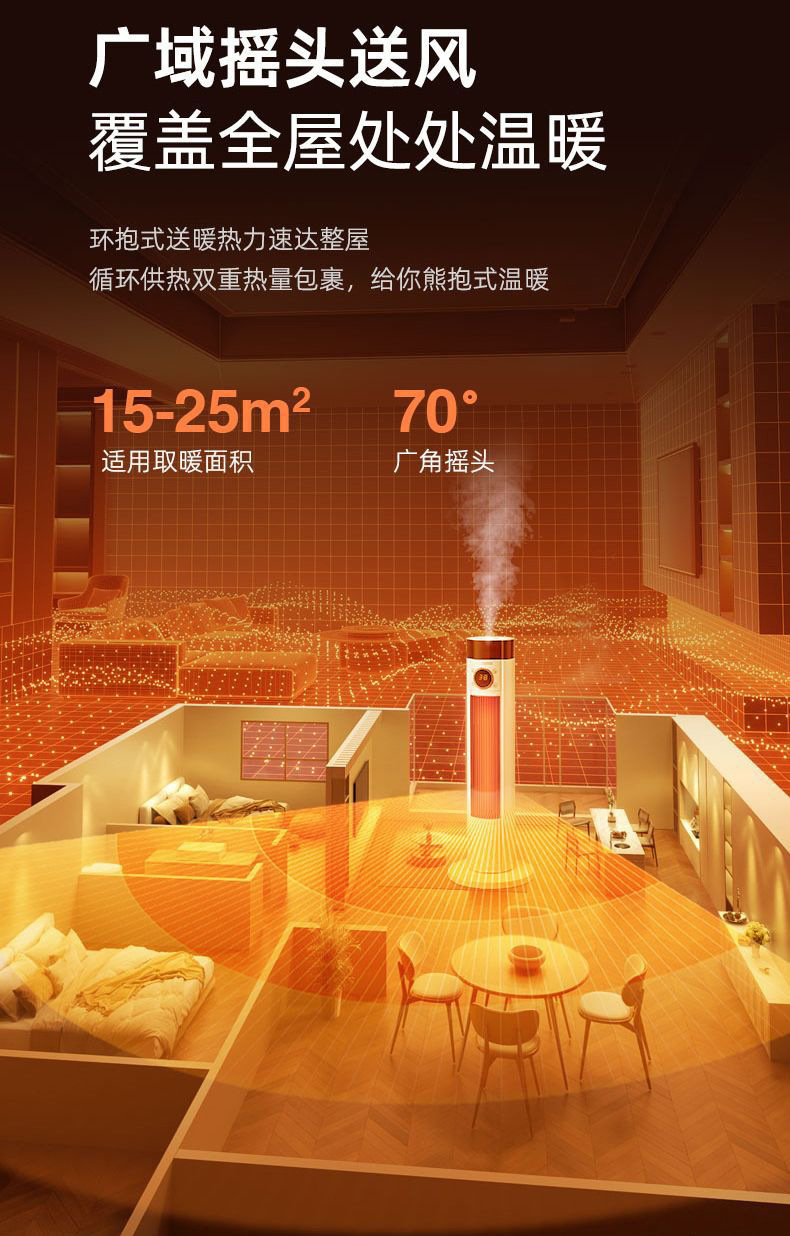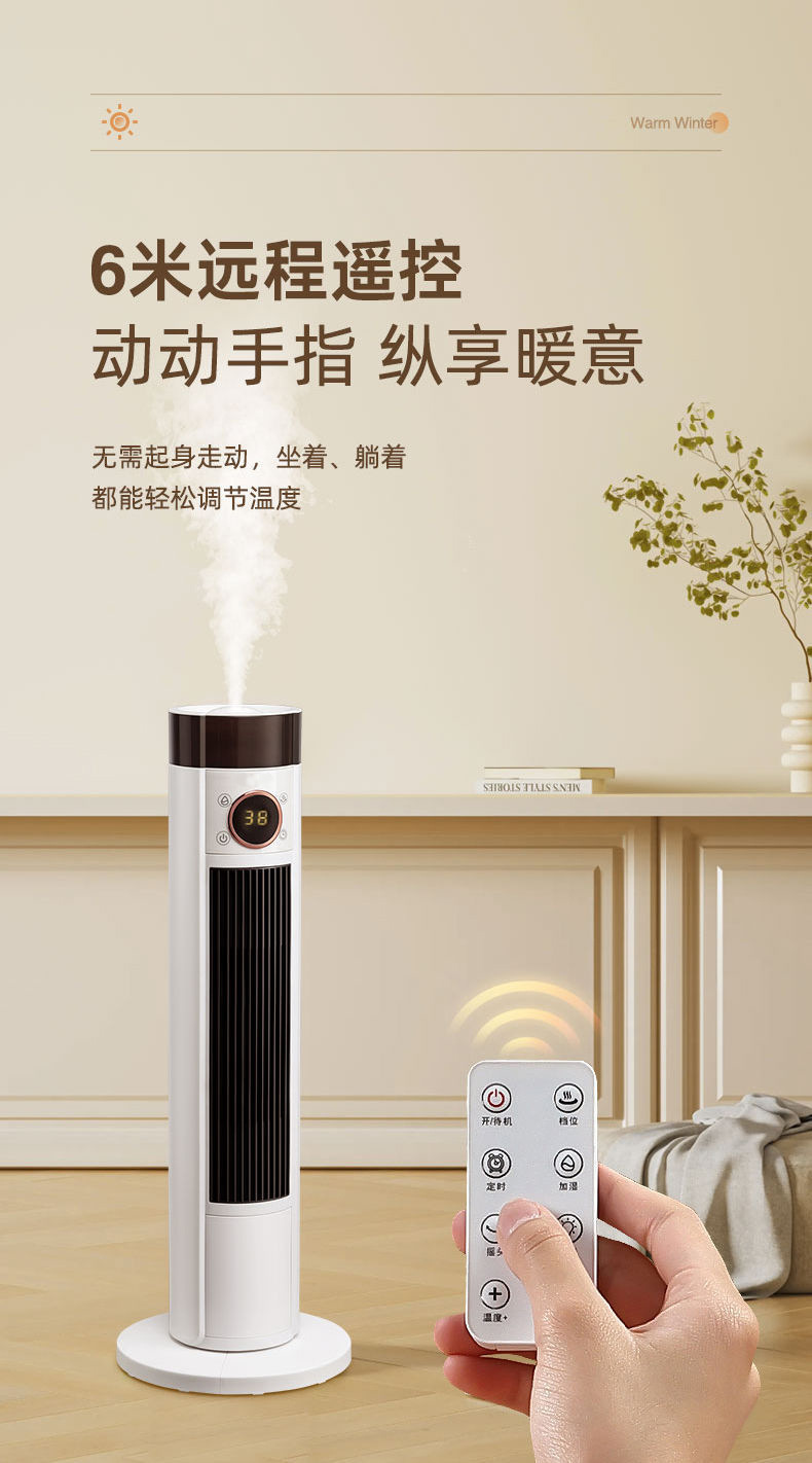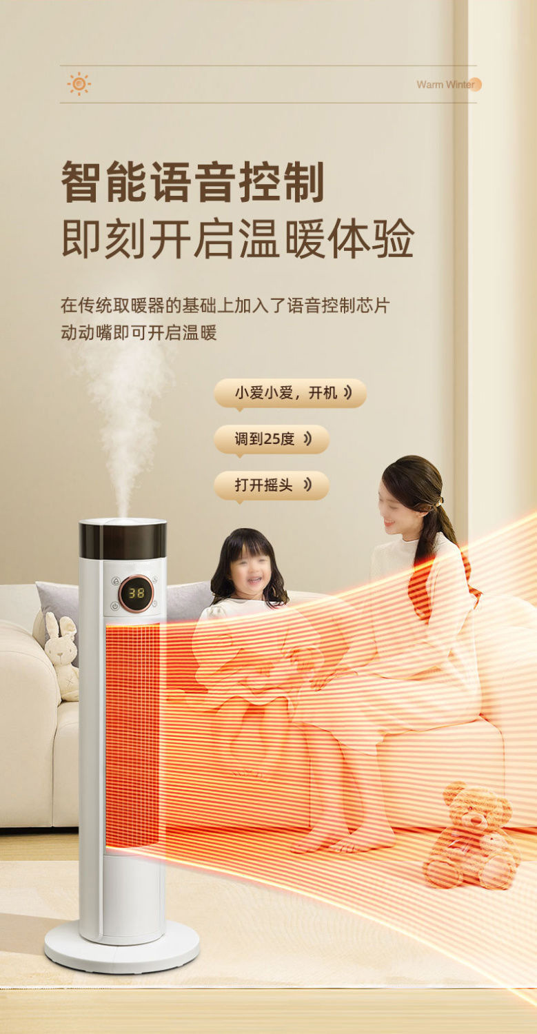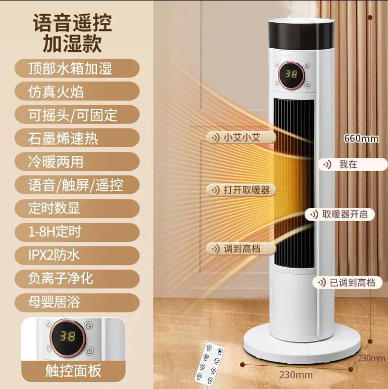 暖风机取暖器 家用速热卧室浴室语音遥控静音节能加湿电暖器