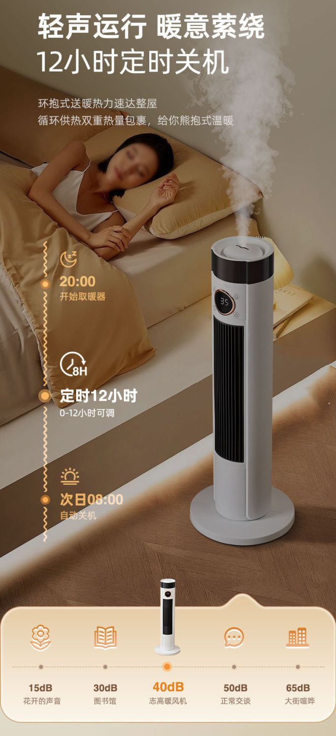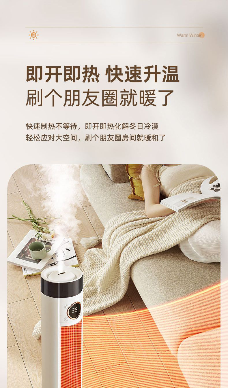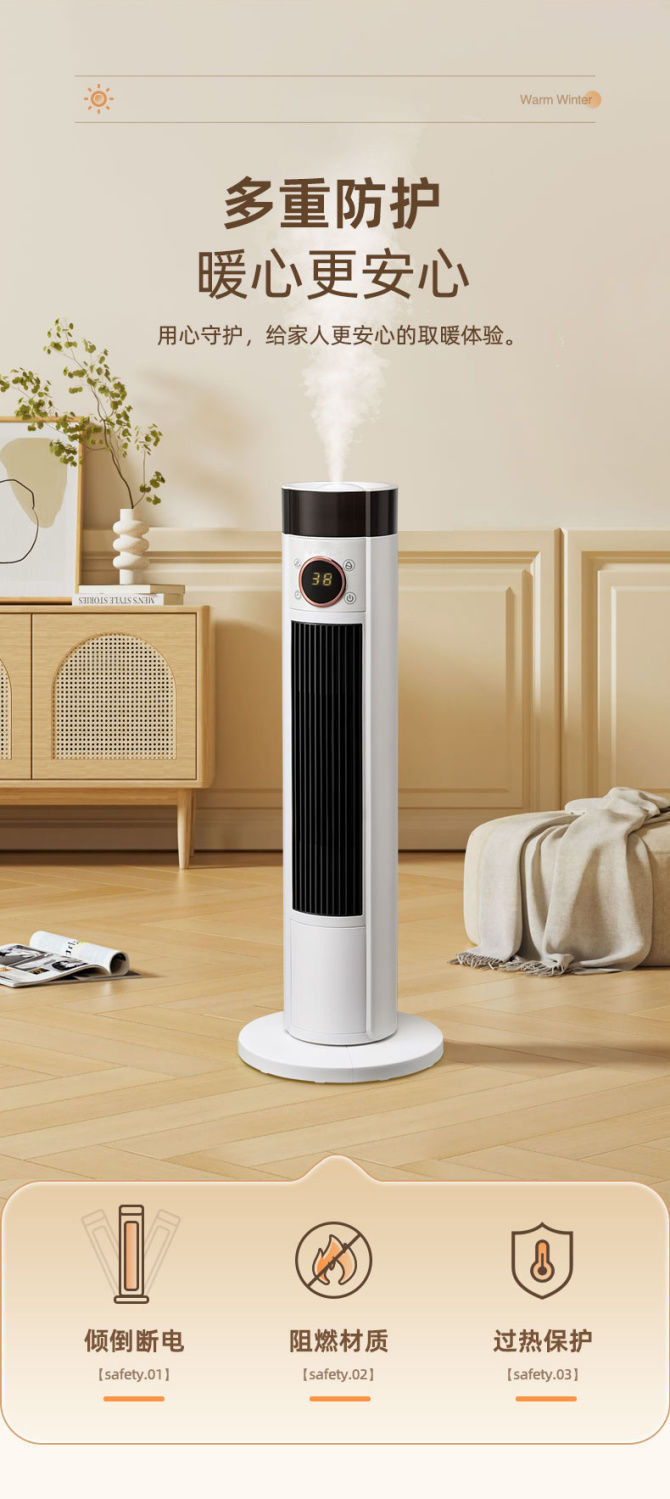 暖风机取暖器 家用速热卧室浴室语音遥控静音节能加湿电暖器