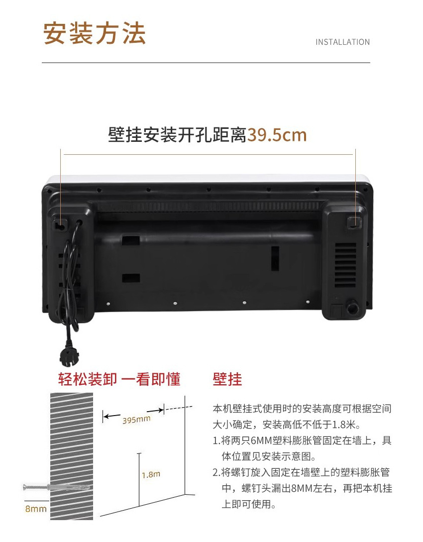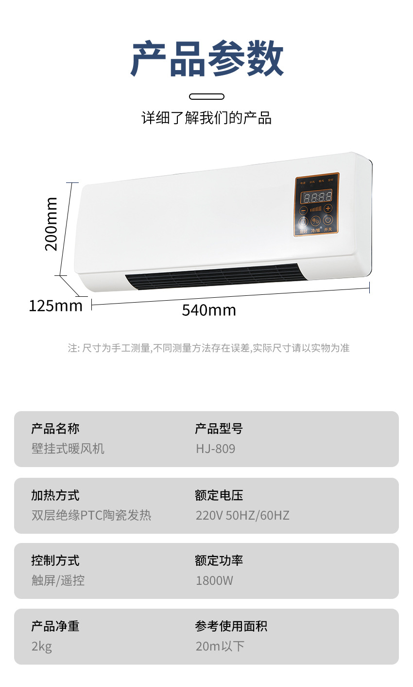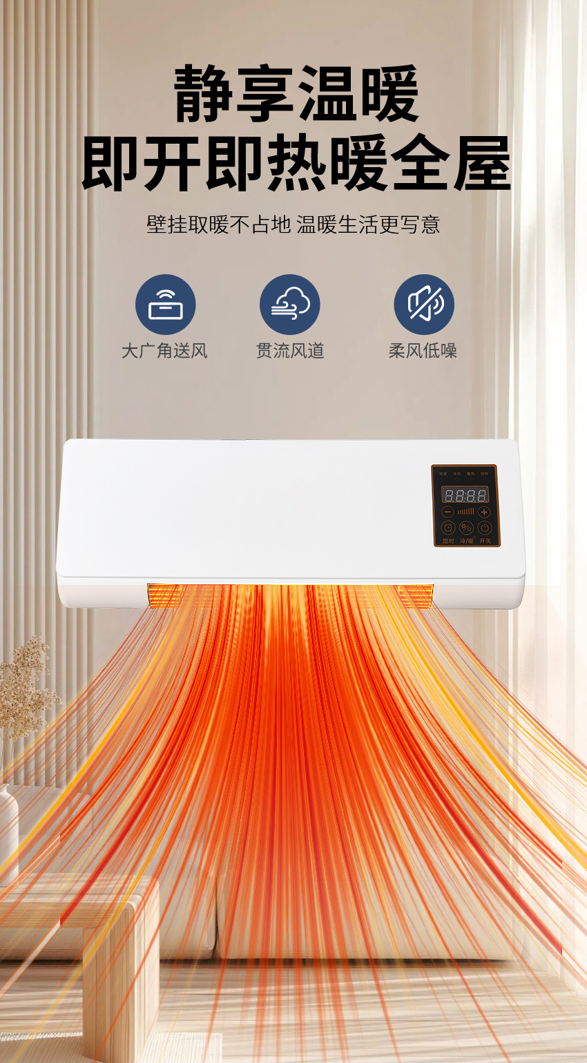 厂家跨境家用小型壁挂式取暖器省电办公室浴室无叶风扇吹风机