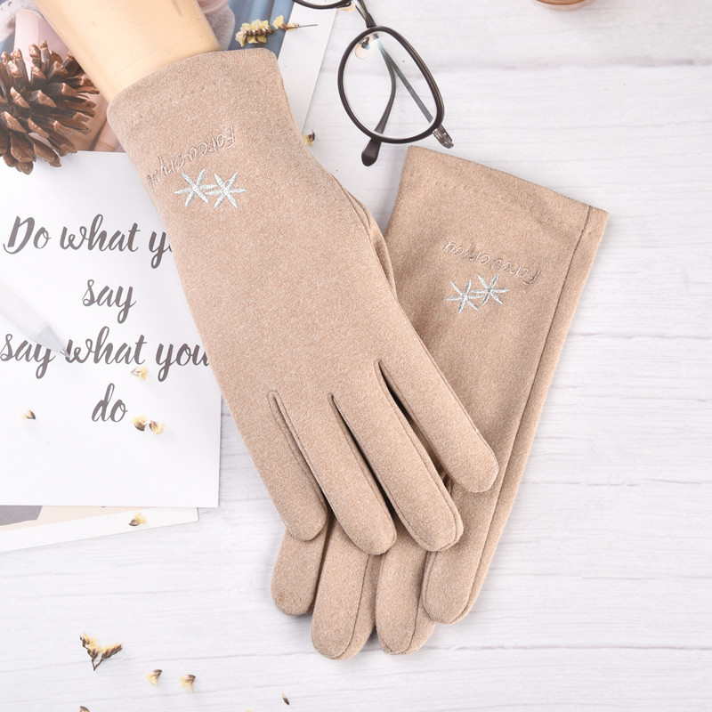 德绒发热手套女可爱触屏秋冬薄款学生户外保暖分指自加绒手套批发