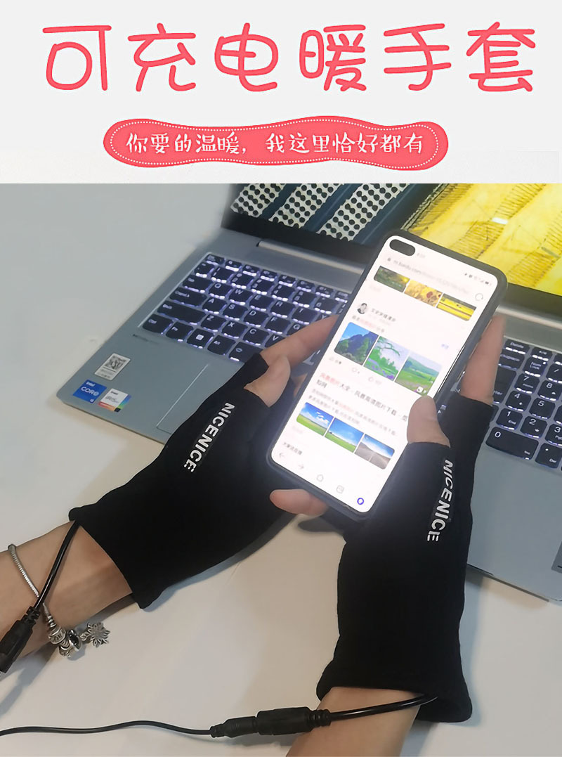 USB发热手套触屏半指电热加绒保暖充电加热手套骑行加厚手套现货