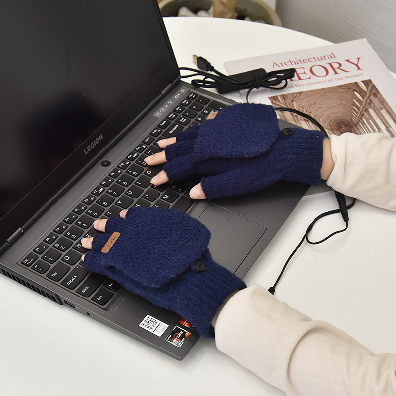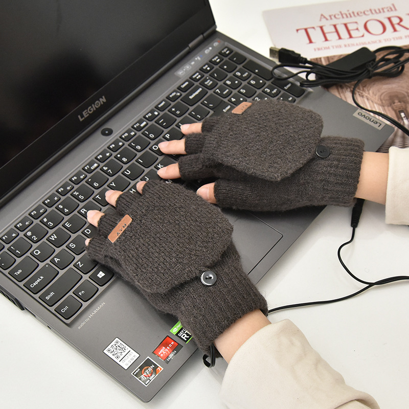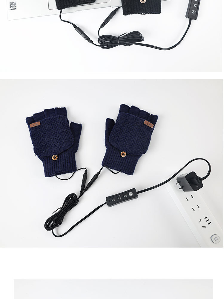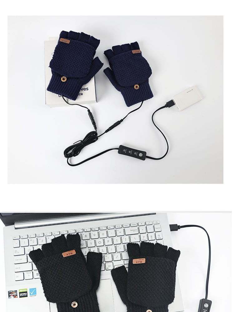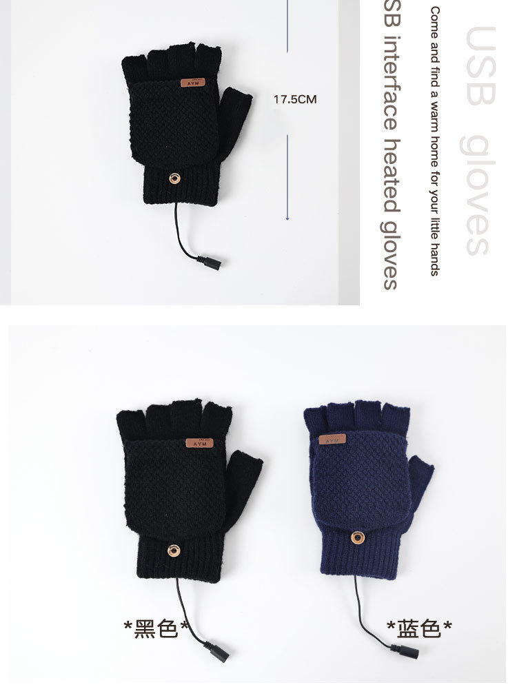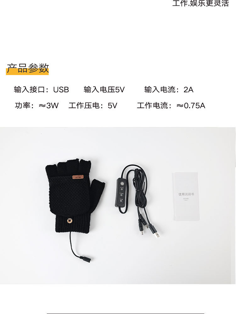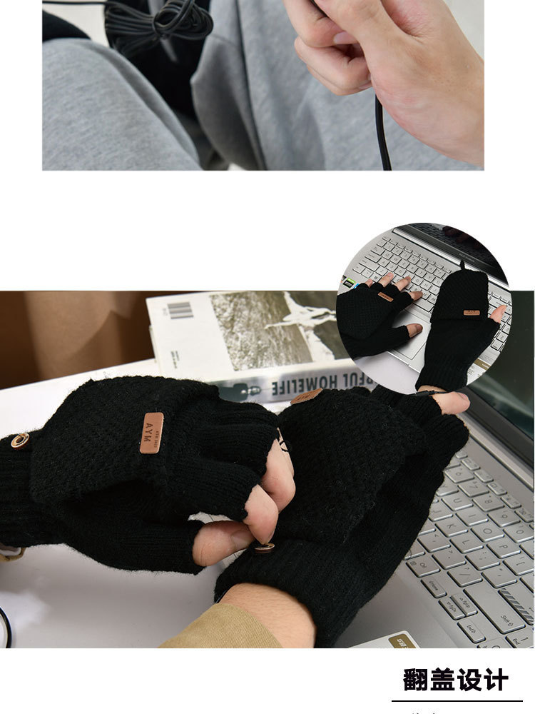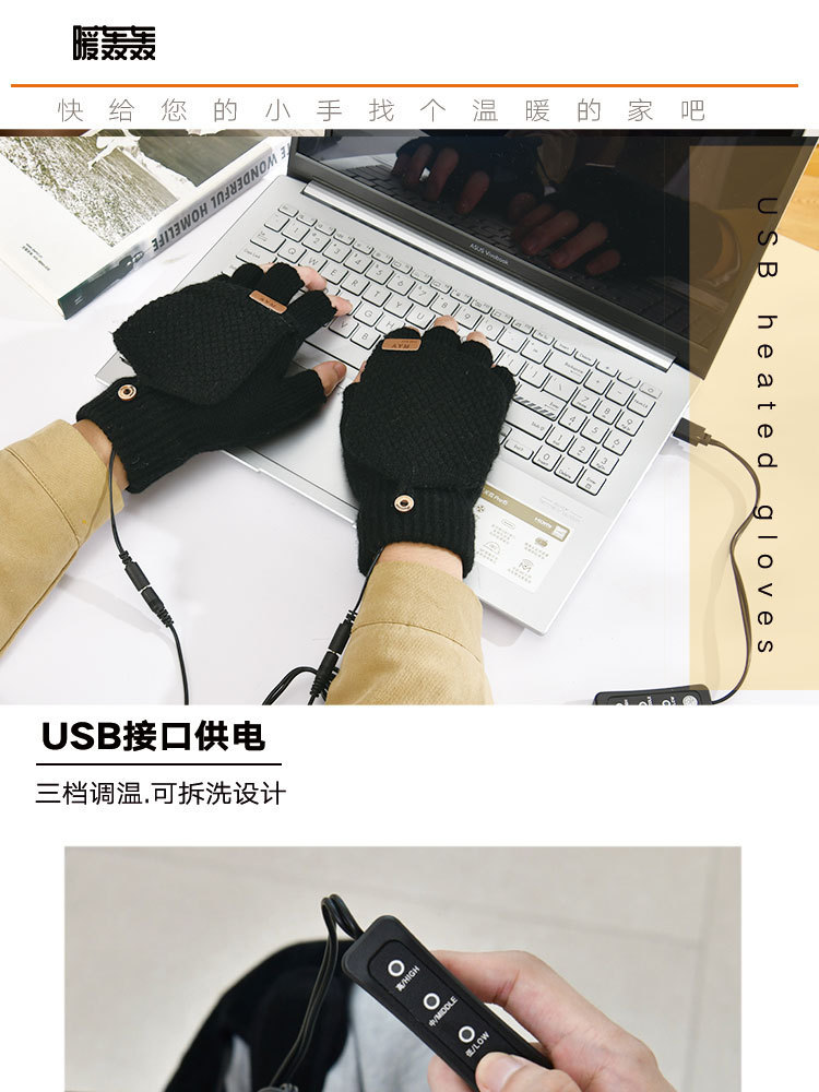 暖轰轰冬季保暖手套USB手套毛绒半指男女移动电源电脑电加热手套