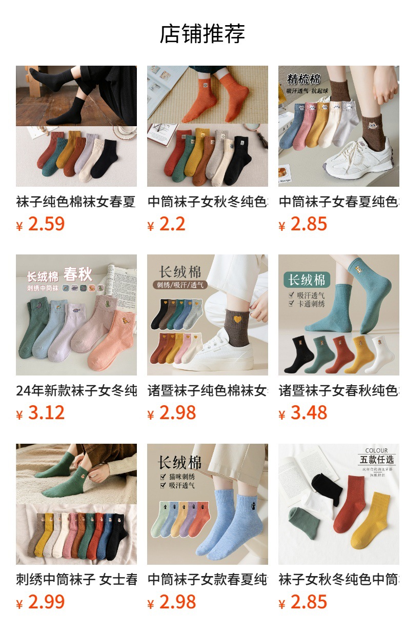 袜子女秋冬中筒纯色棉袜女士刺绣狐狸吸汗保暖长筒袜诸暨女袜批发