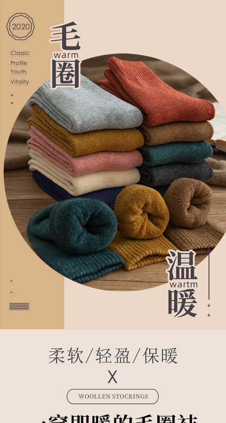 袜子女中筒袜秋冬季棉袜ins潮黑色长筒男冬天加厚加绒保暖毛圈袜