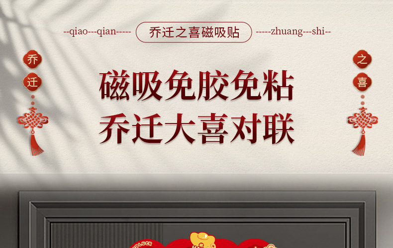 磁吸乔迁之喜对联2026新款新居入伙布置福字门贴搬家用品乔迁礼盒