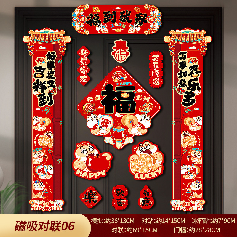 2025蛇年新年春节装饰对联磁吸卡通春联家用创意福字过年入户装扮