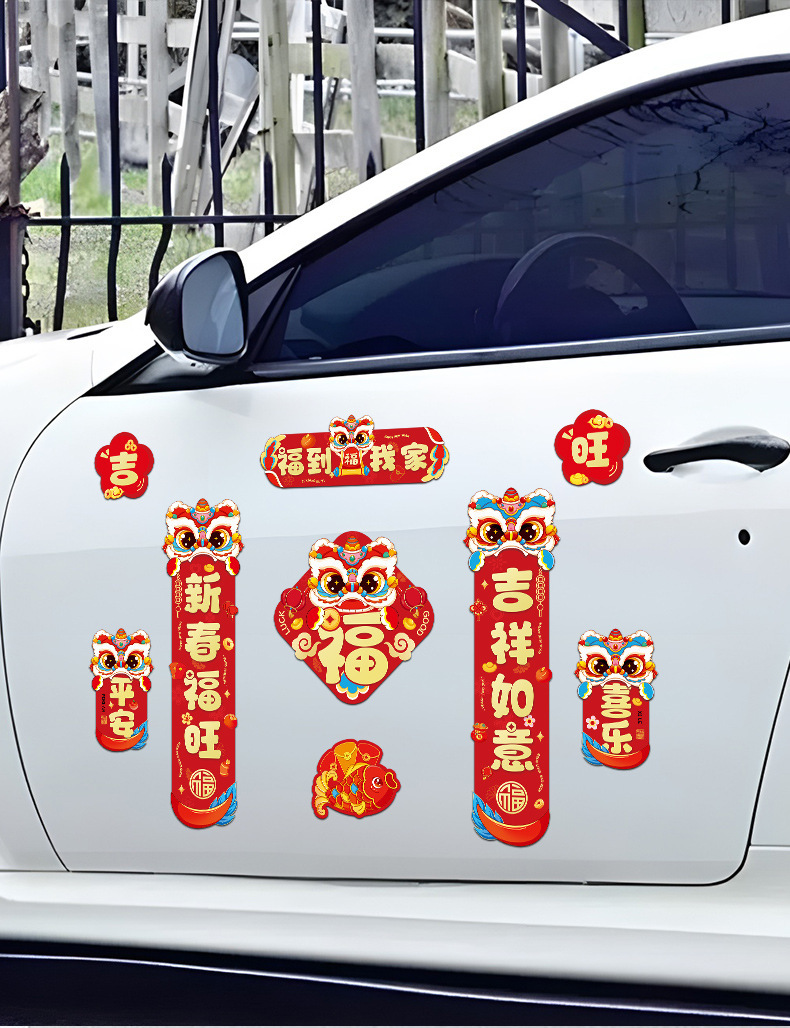 磁吸汽车对联2026马年新年车贴车用春联好物春节福字冰箱贴小对联
