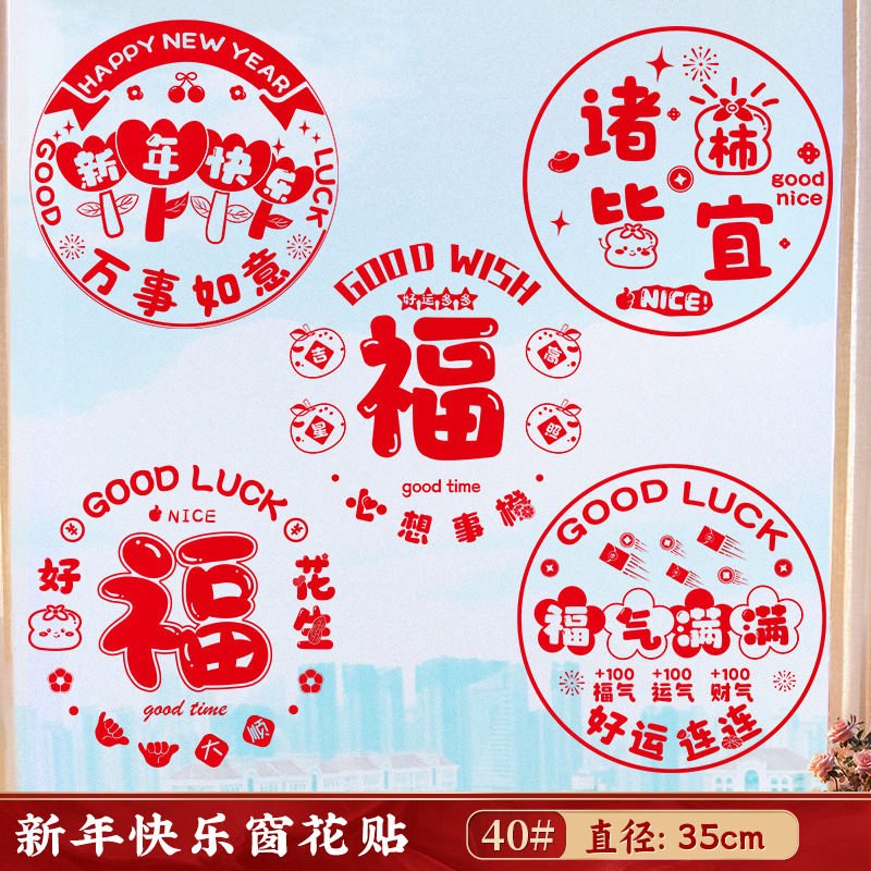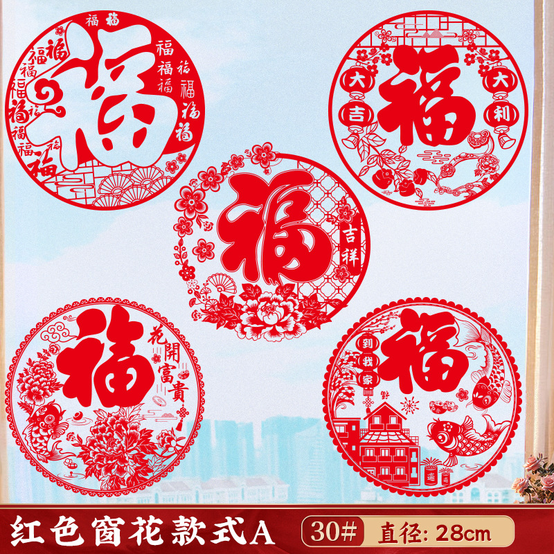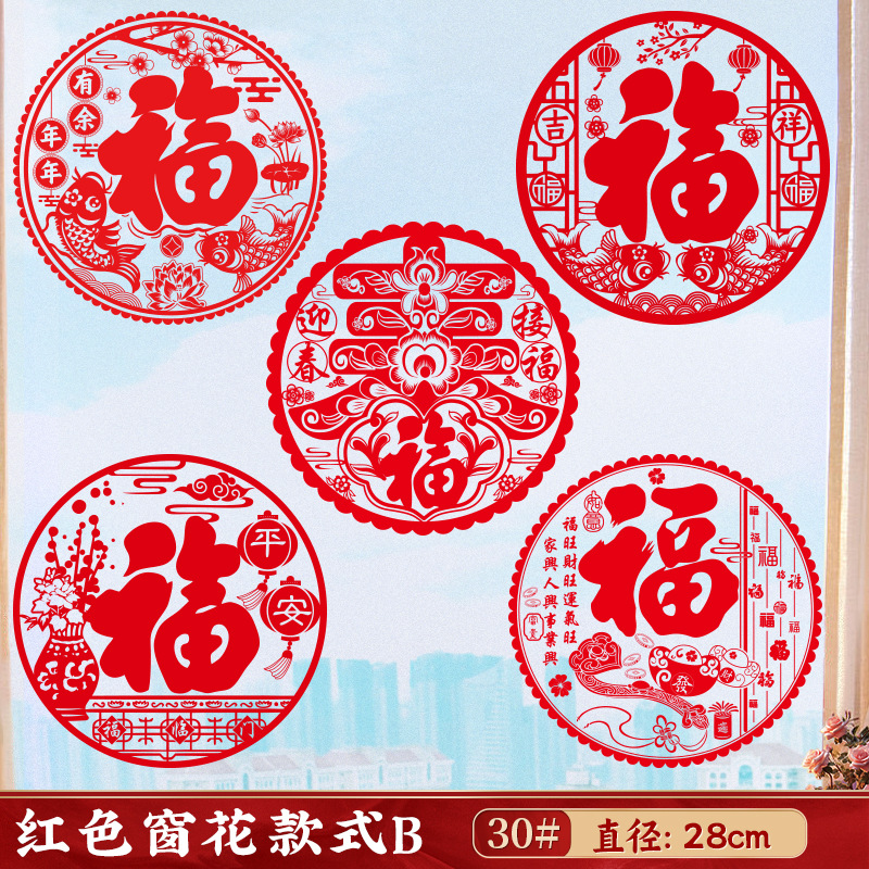 春节红色福字静电贴无胶窗花贴门贴2026新年装饰品防水玻璃剪纸贴