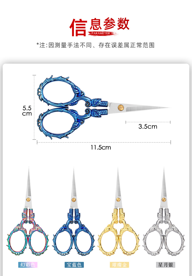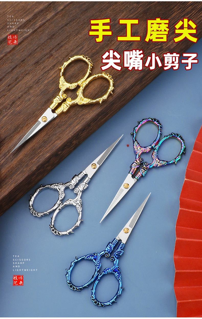 复古尖头小剪刀不锈钢家用剪刀窗花剪纸毛线绣花剪手工学生办公剪