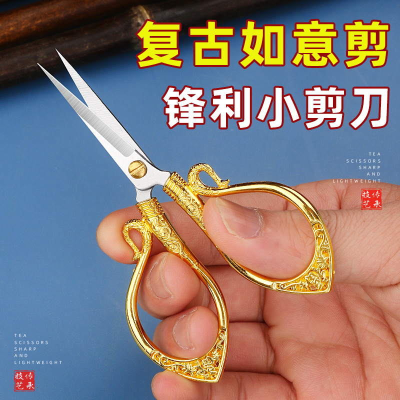 博悦如意不锈钢家用剪刀复古窗花绣花刺绣剪刀 办公剪DIY手工剪纸