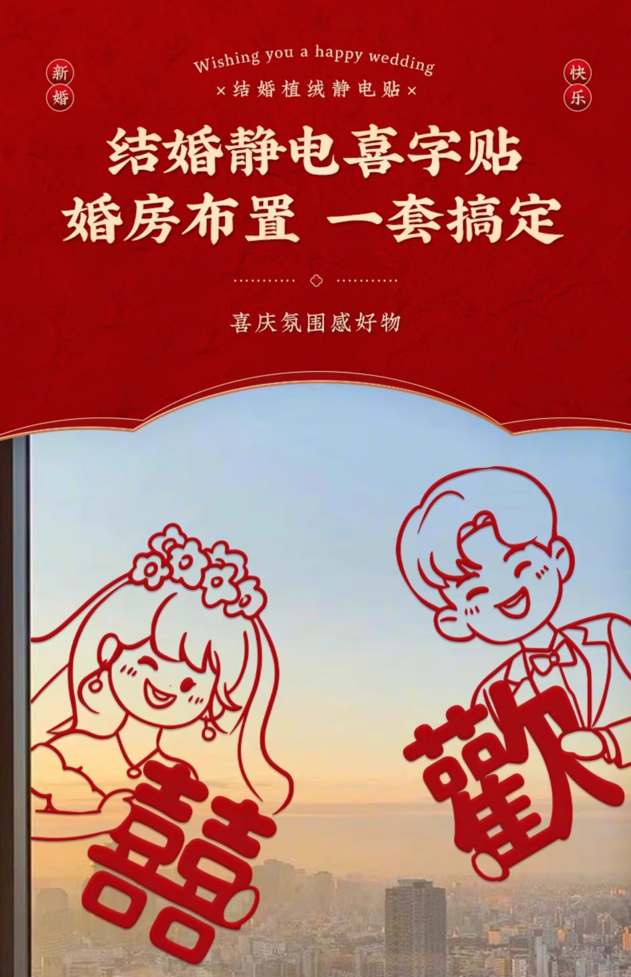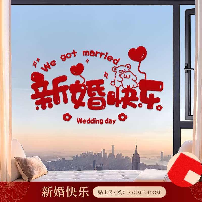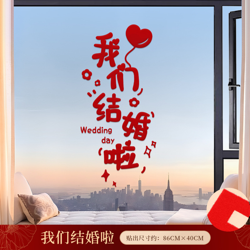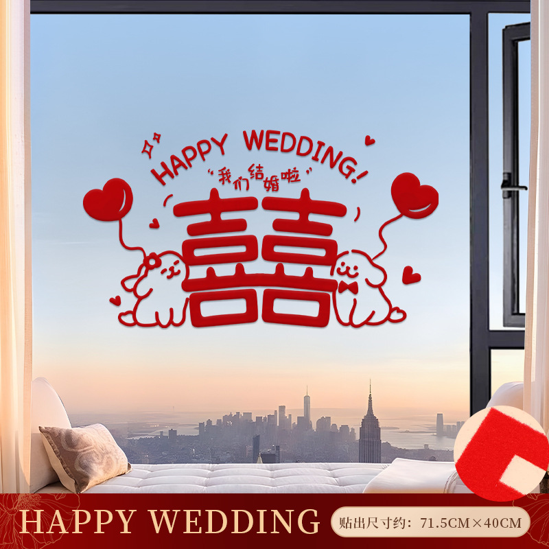 喜字静电贴结婚专用婚房玻璃窗户剪纸窗花布置贴纸囍字贴用品大全