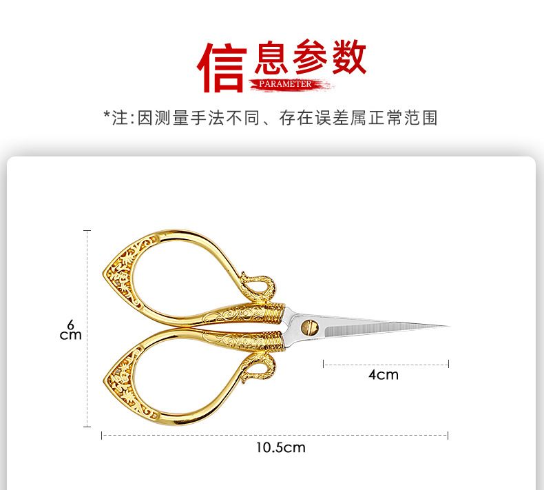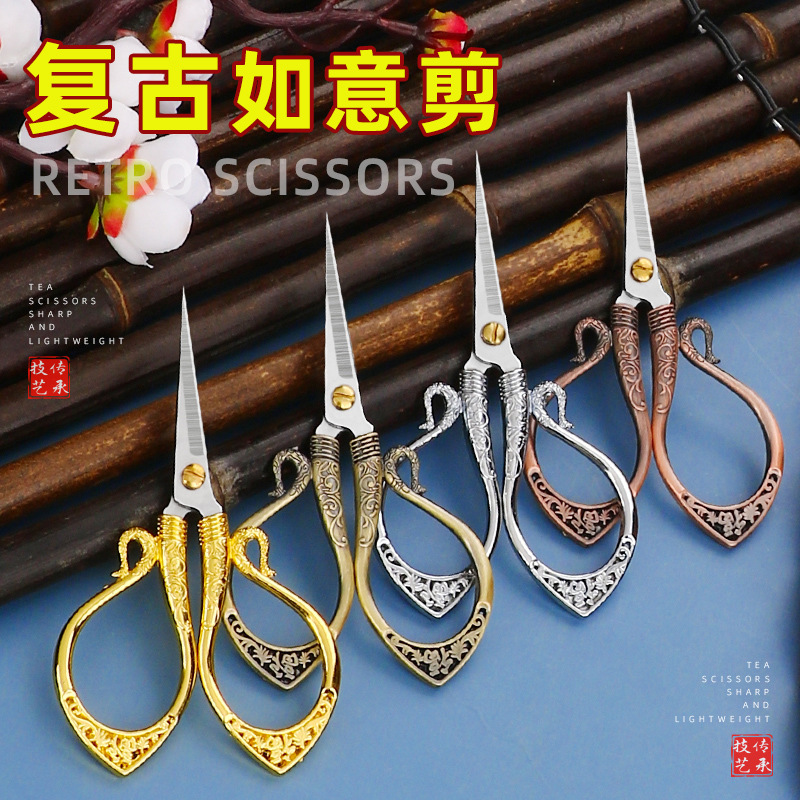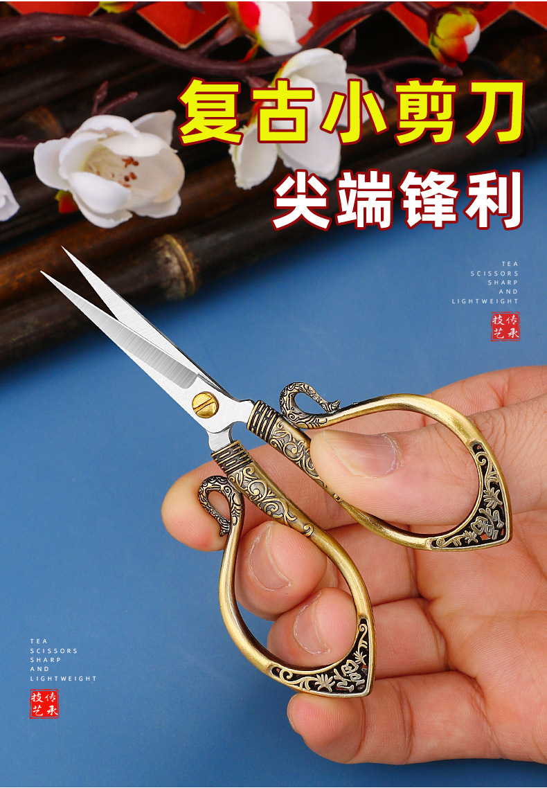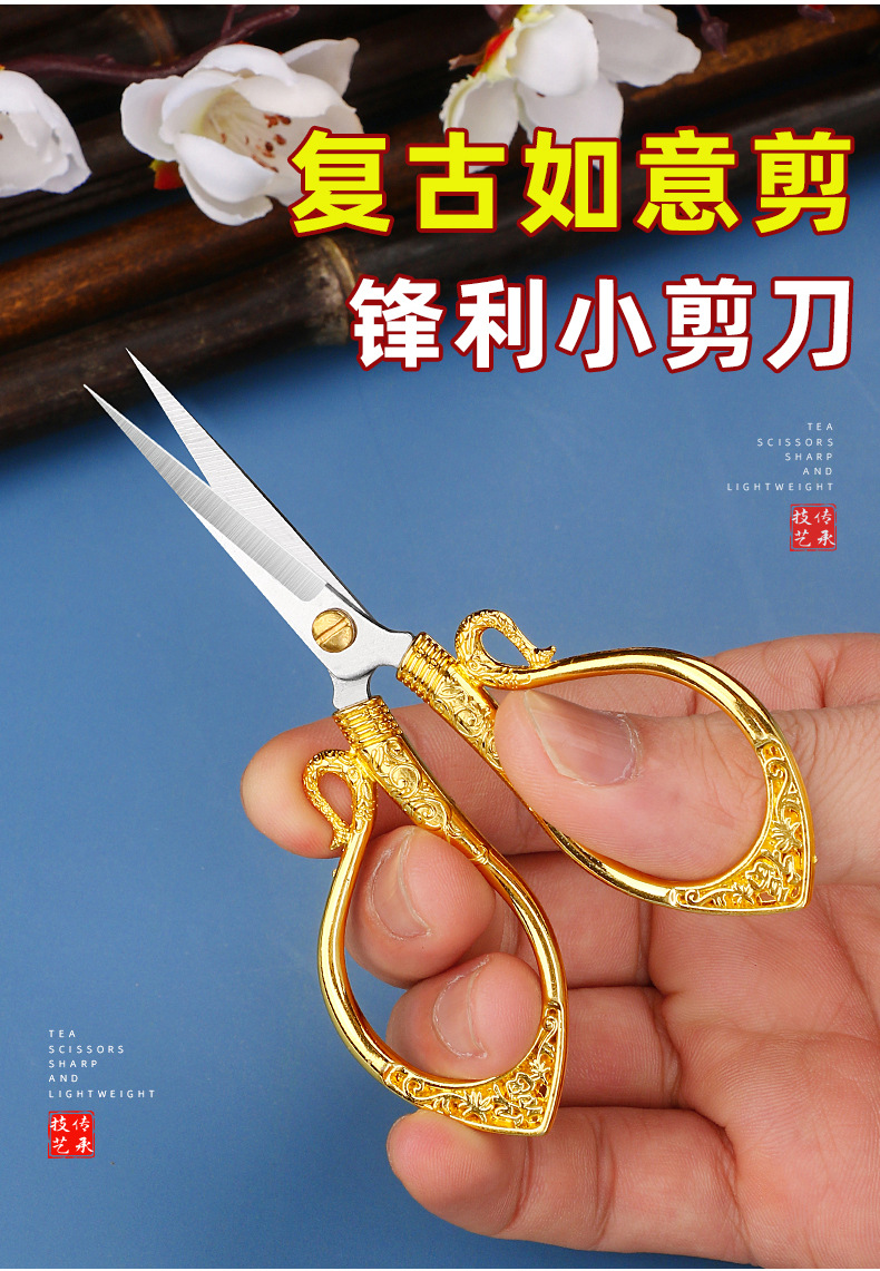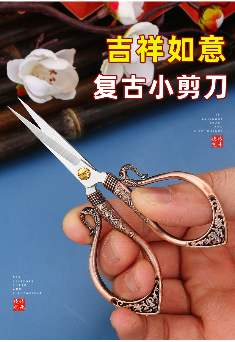 博悦如意不锈钢家用剪刀复古窗花绣花刺绣剪刀 办公剪DIY手工剪纸