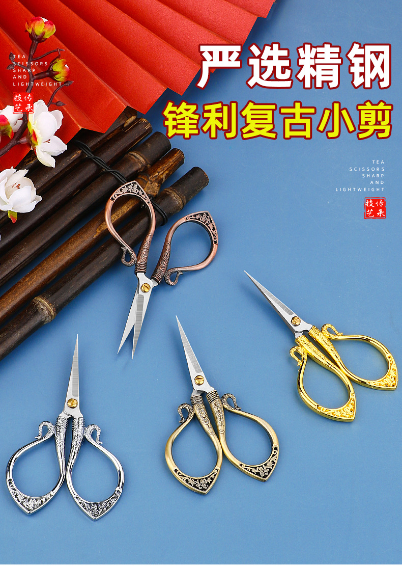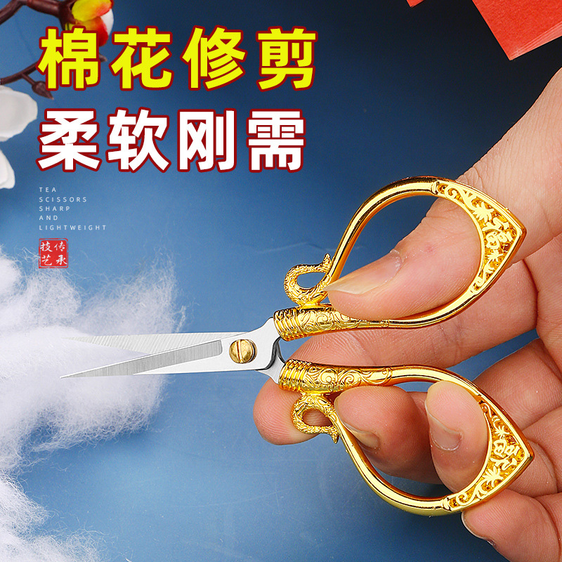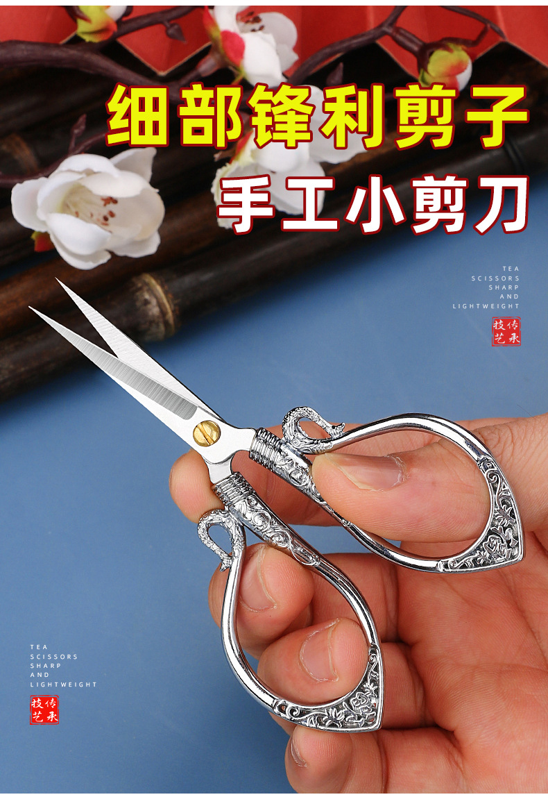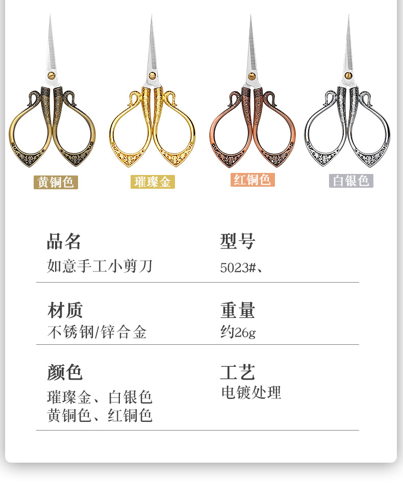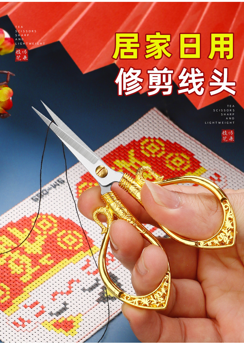 博悦如意不锈钢家用剪刀复古窗花绣花刺绣剪刀 办公剪DIY手工剪纸