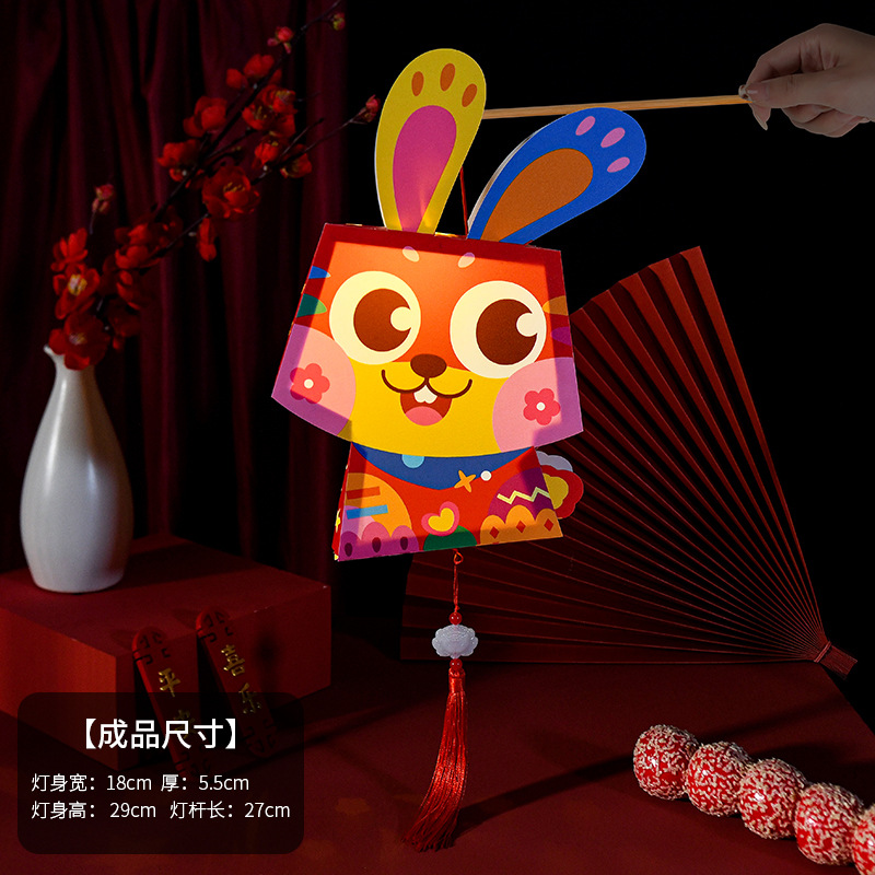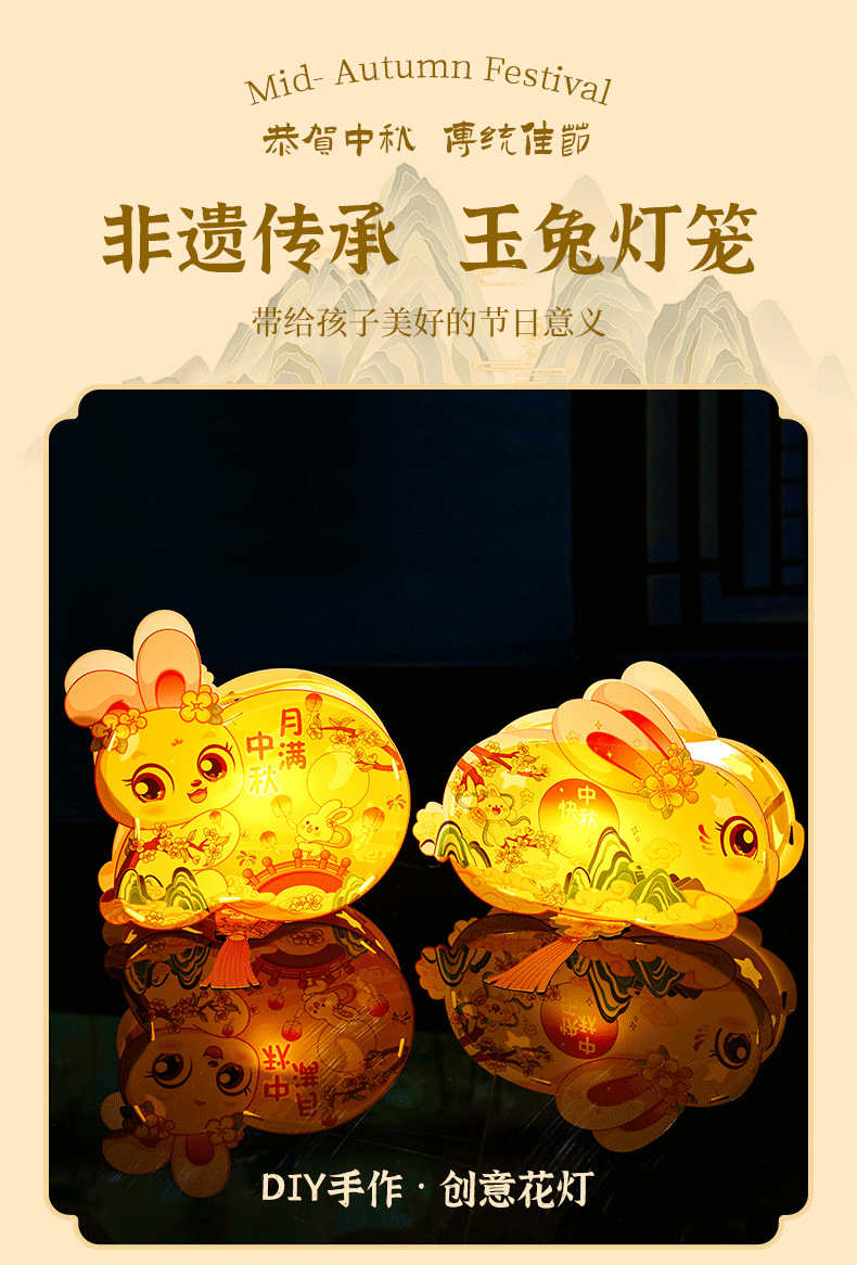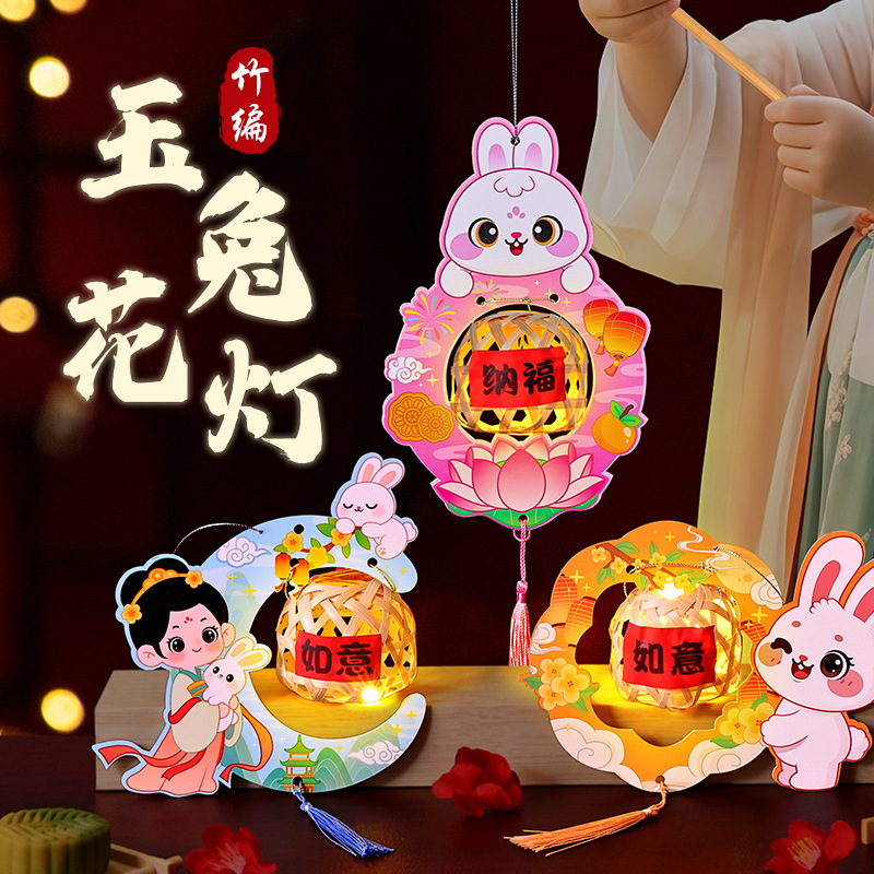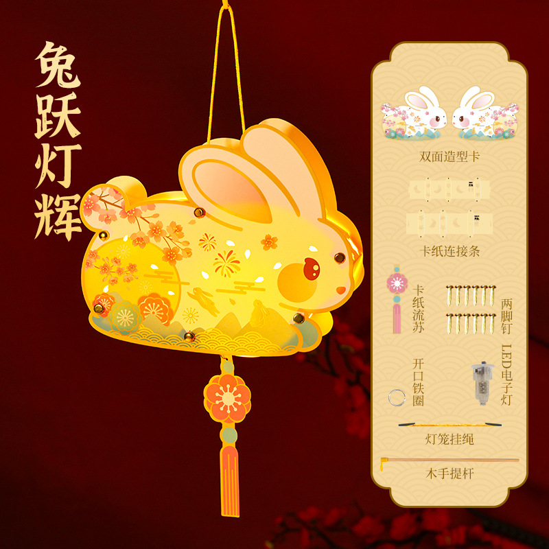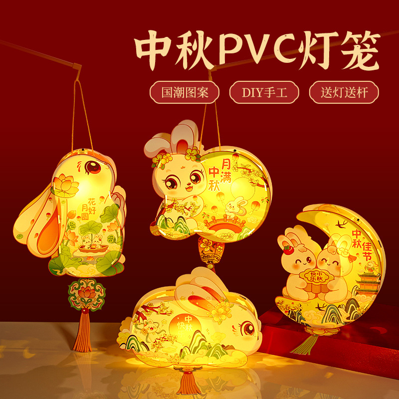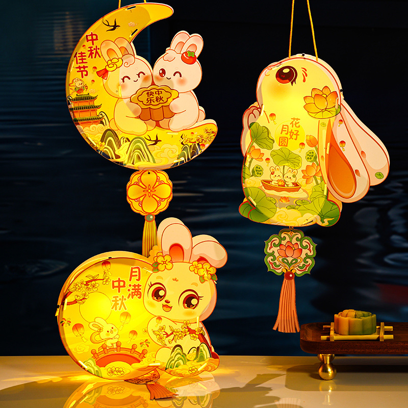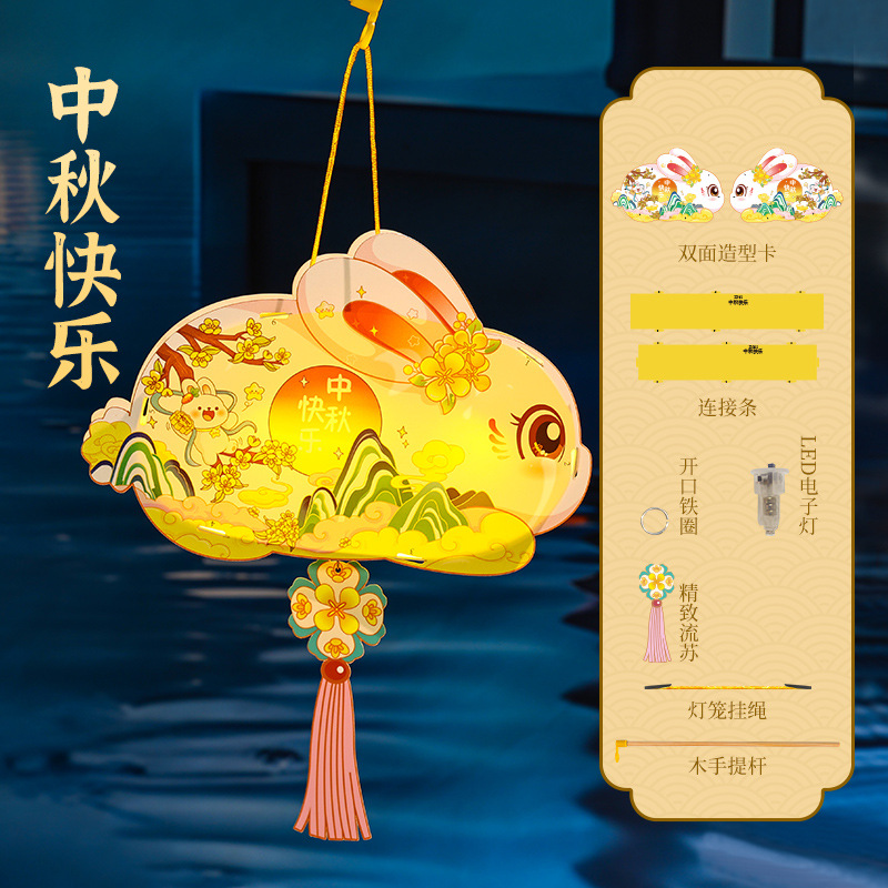 中秋灯笼手工diy儿童手提发光卡通兔子中秋节古风花灯礼物批发
