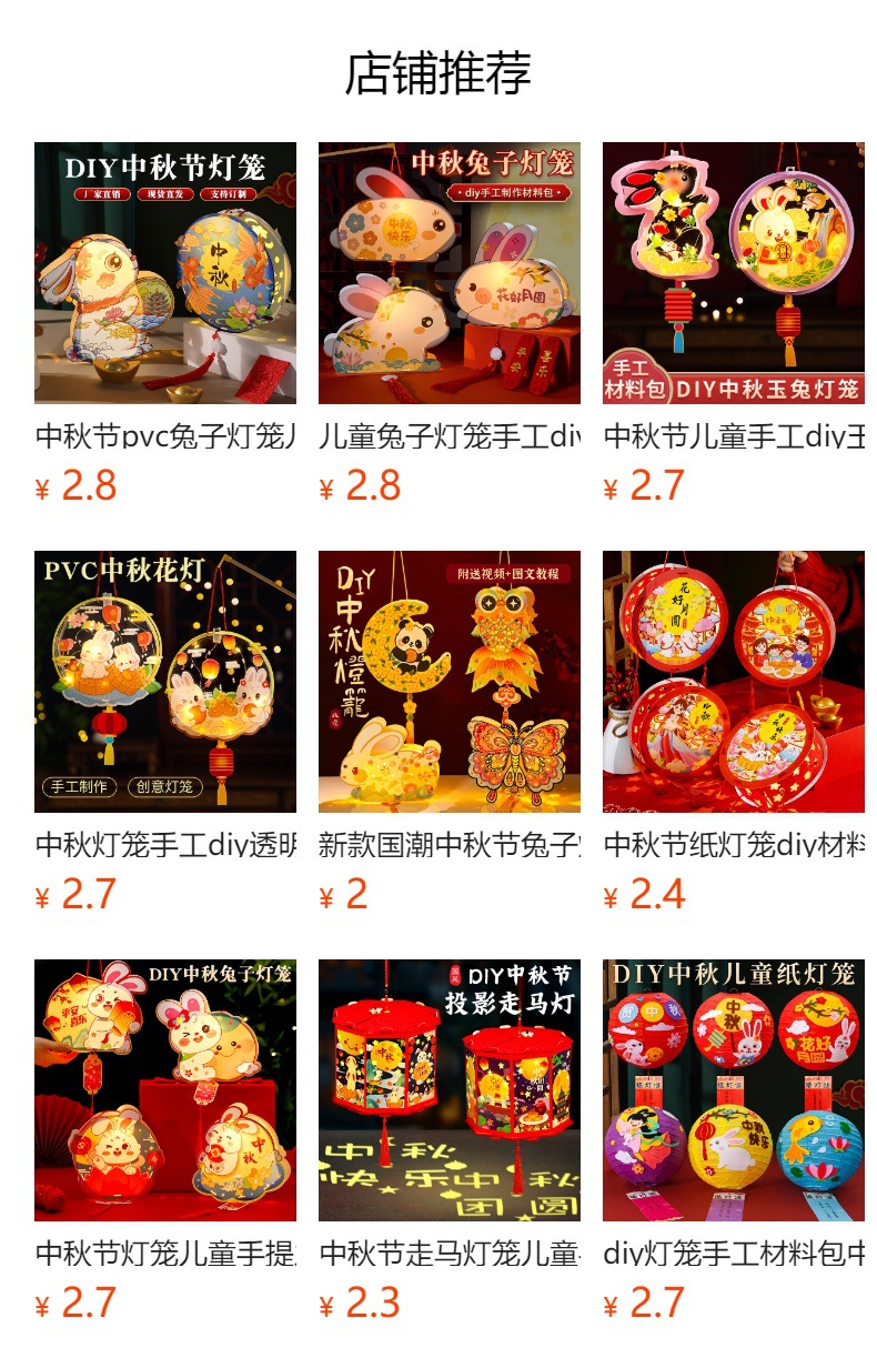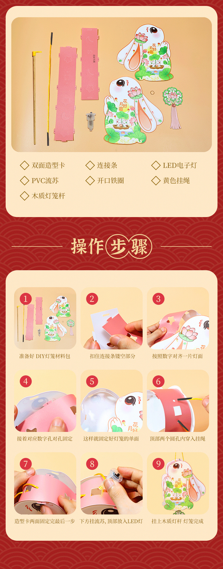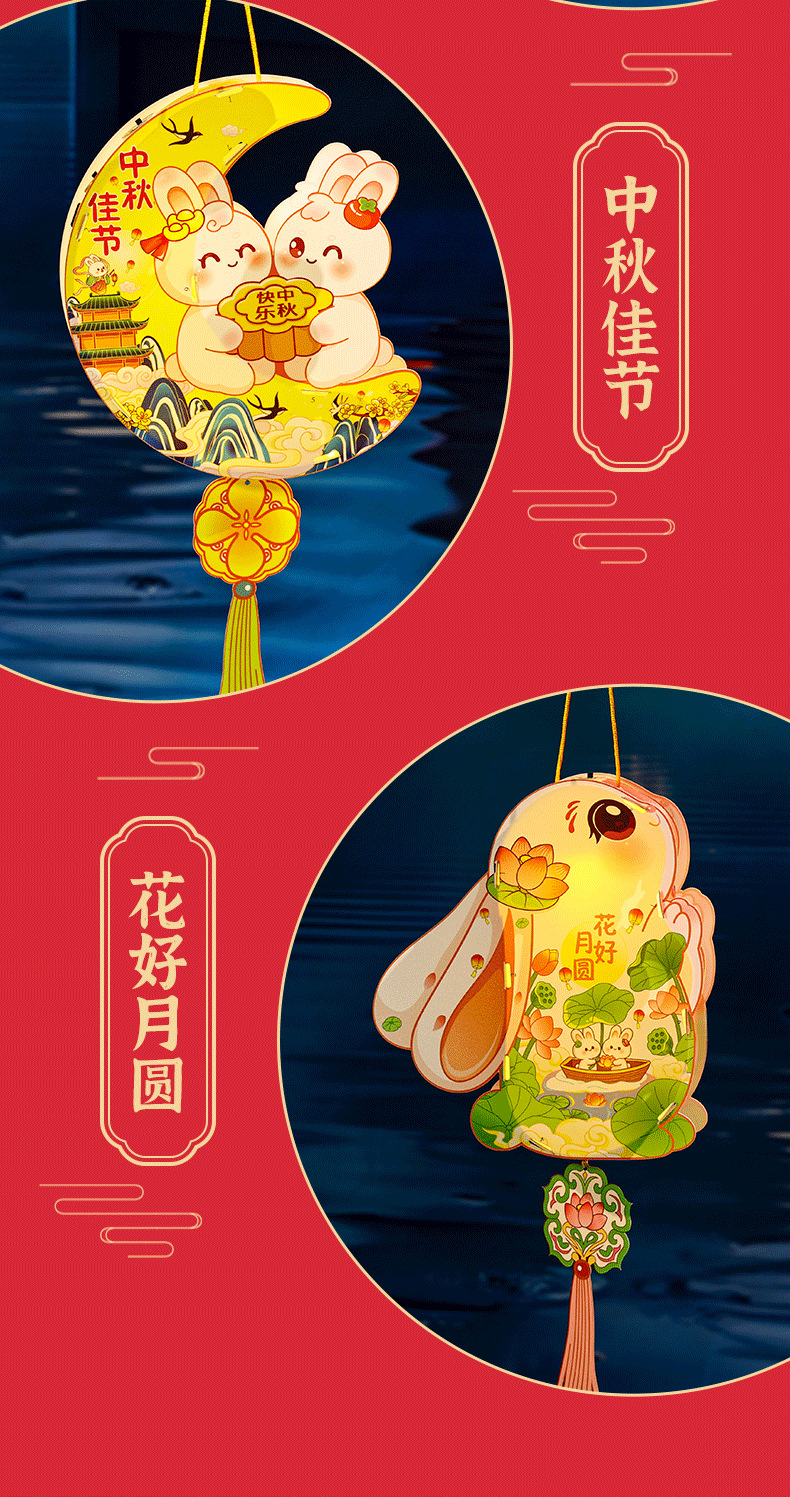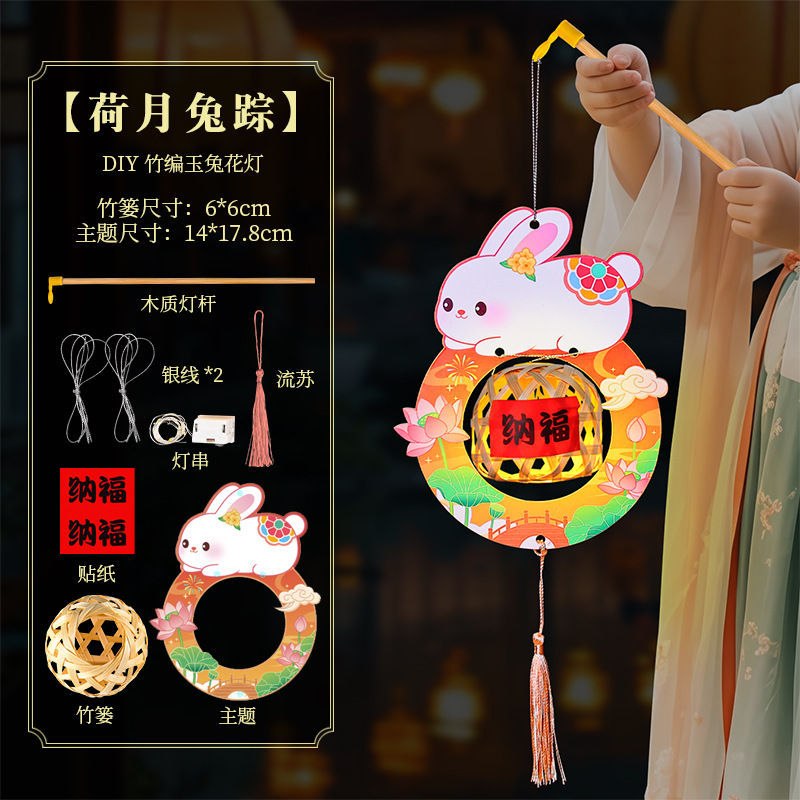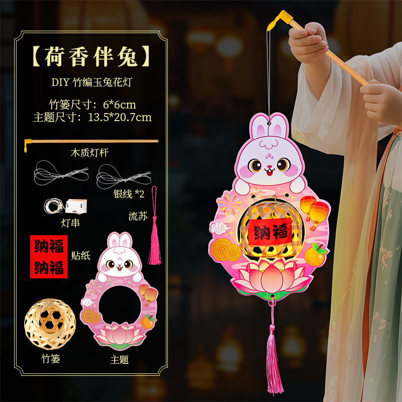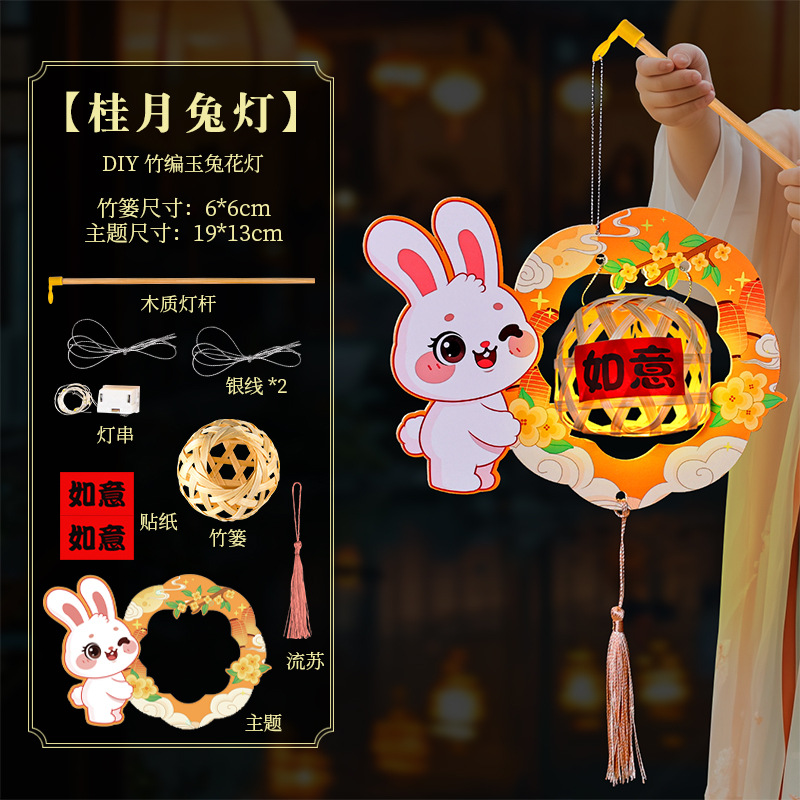 中秋灯笼手工diy儿童手提发光卡通兔子中秋节古风花灯礼物批发