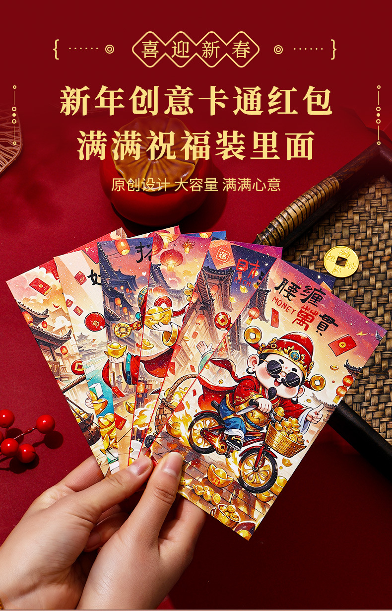 2026马年新款春节金葱红包袋创意国潮利是封卡通过年压岁钱包大号
