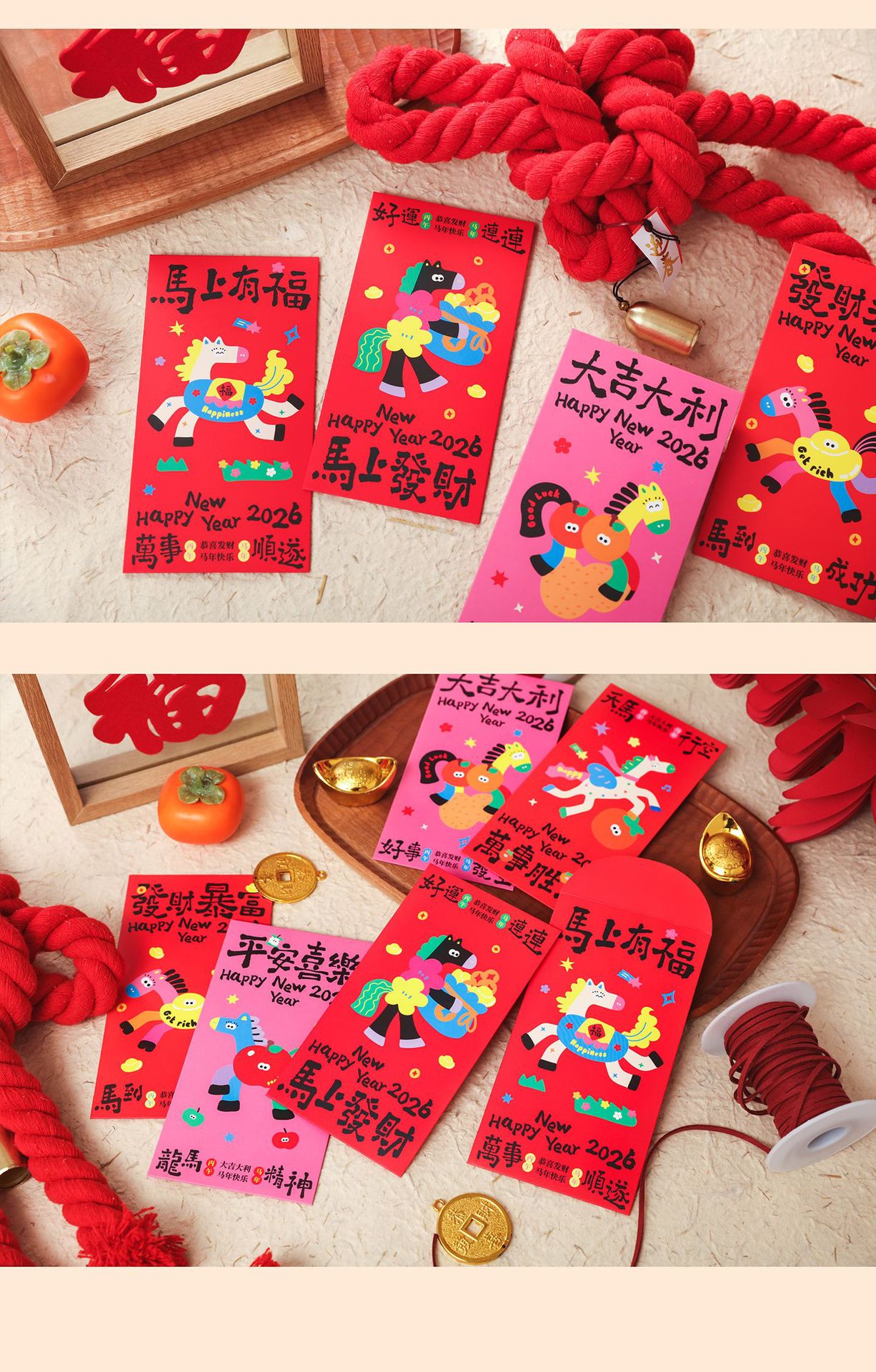 好诗乐 6枚马年创意利是封文艺千元红包袋新年结婚婚礼宝宝满月红
