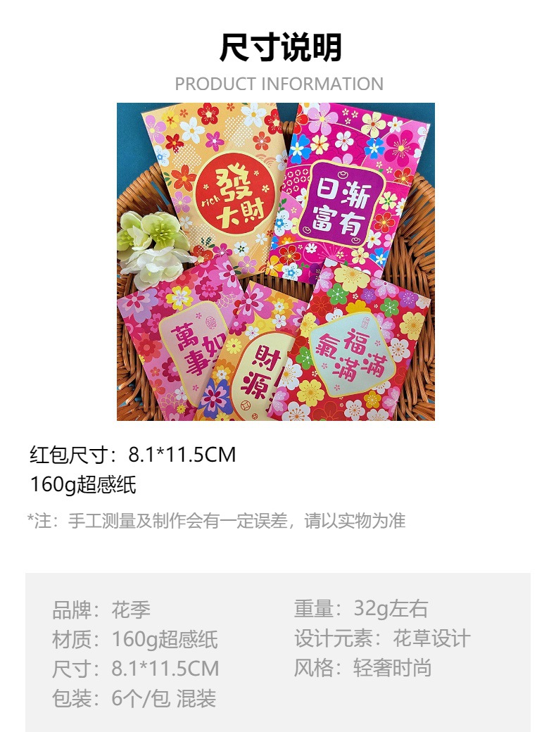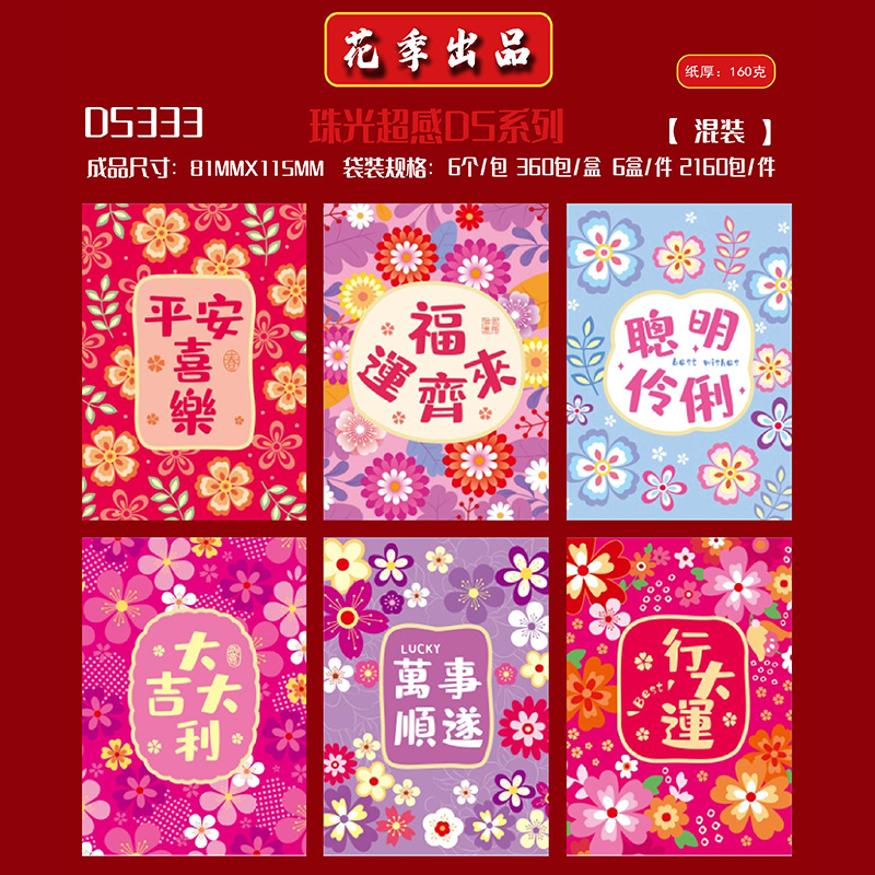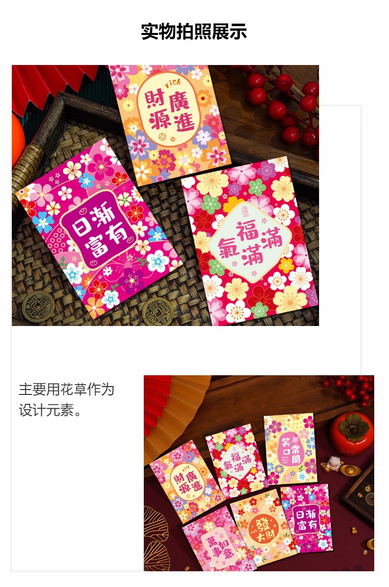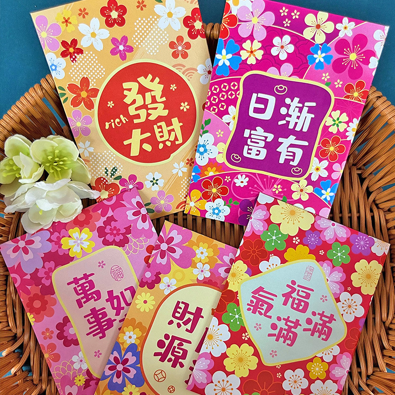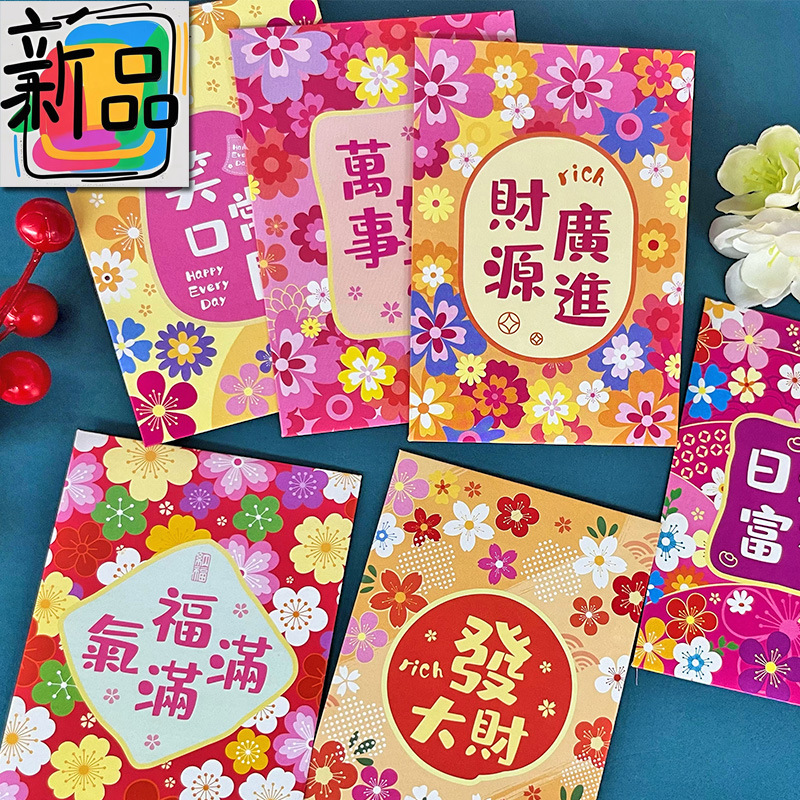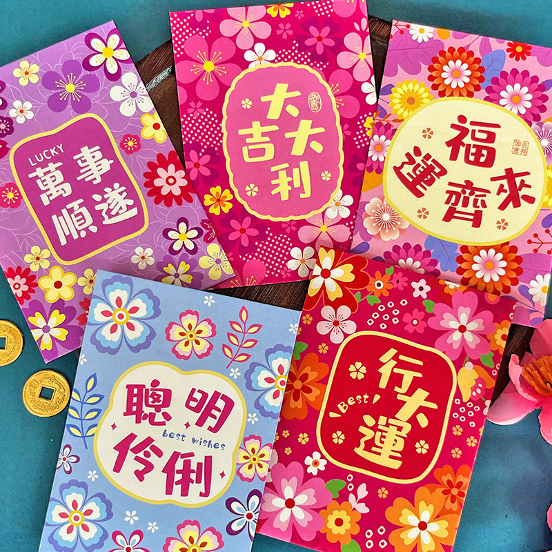 花季红包港风红包袋马年创意花草春节百元拜年利是封批发一件代发