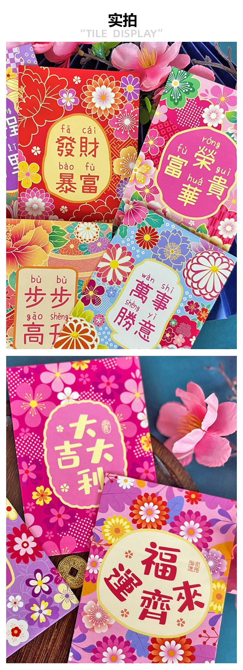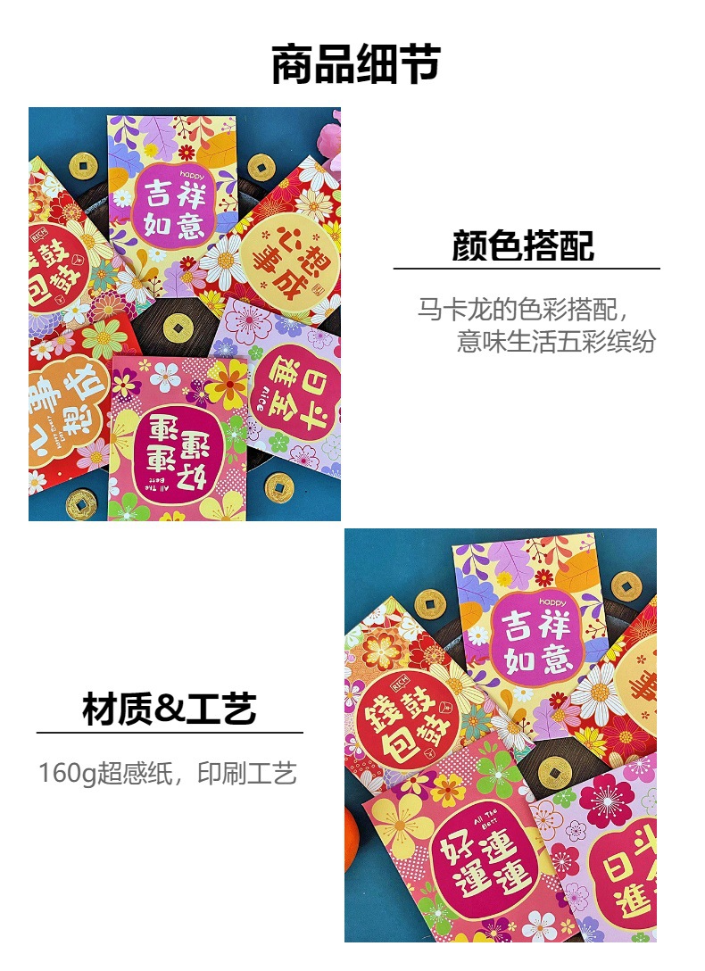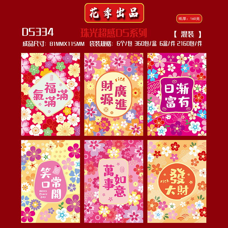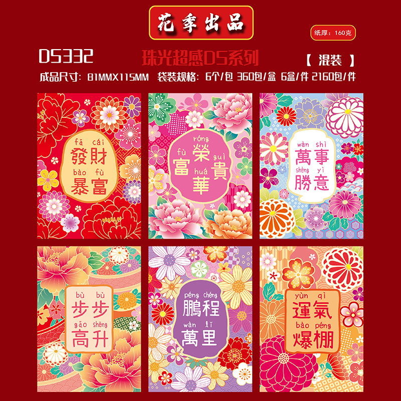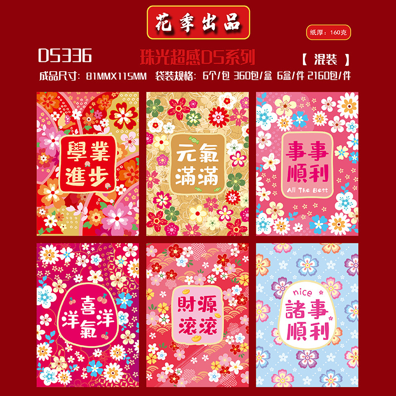 花季红包港风红包袋马年创意花草春节百元拜年利是封批发一件代发
