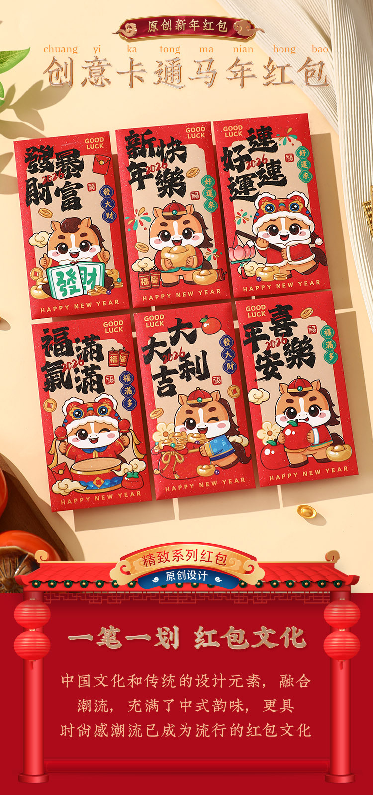 2026马年新款春节过年新年压岁红包袋指定发财个性创意利是封批发