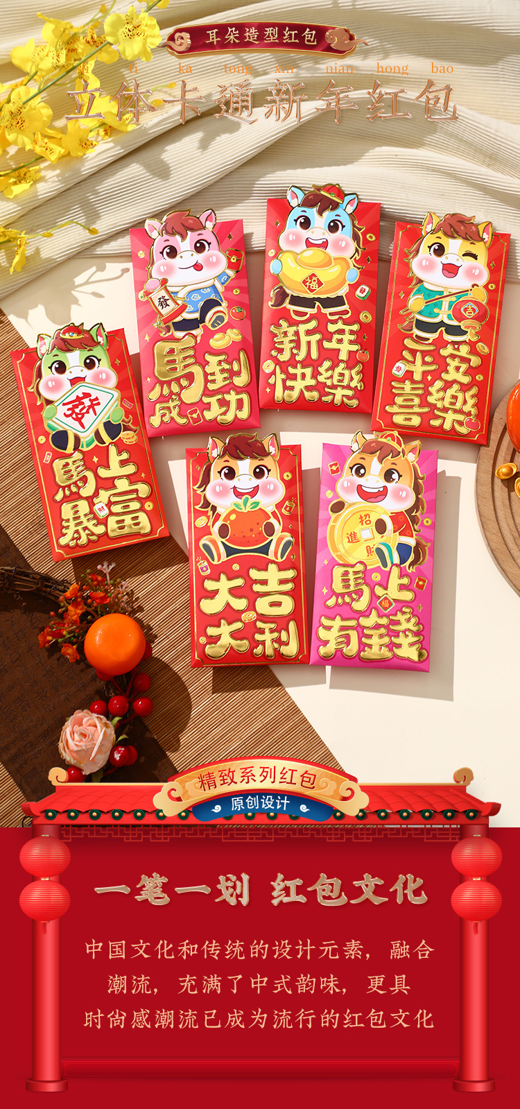 2026马年卡通立体红包新年压岁通用红包袋春节个性创意利是封批发