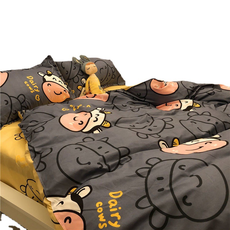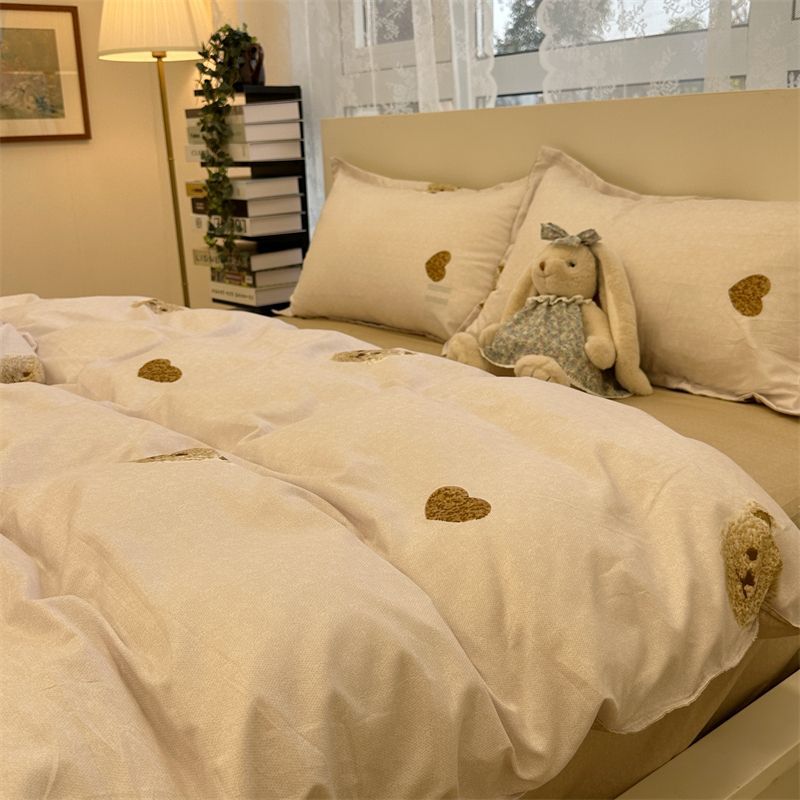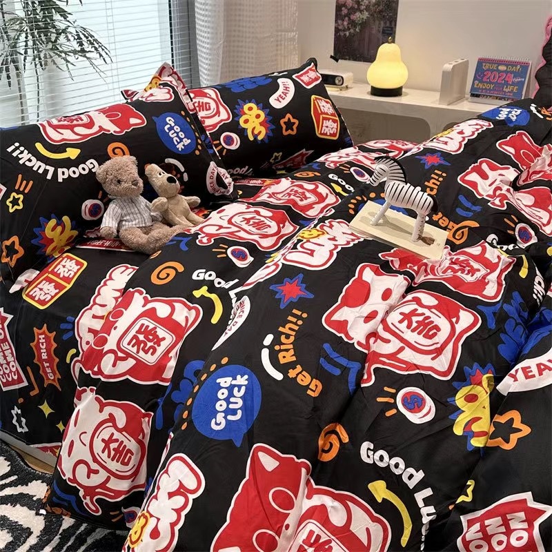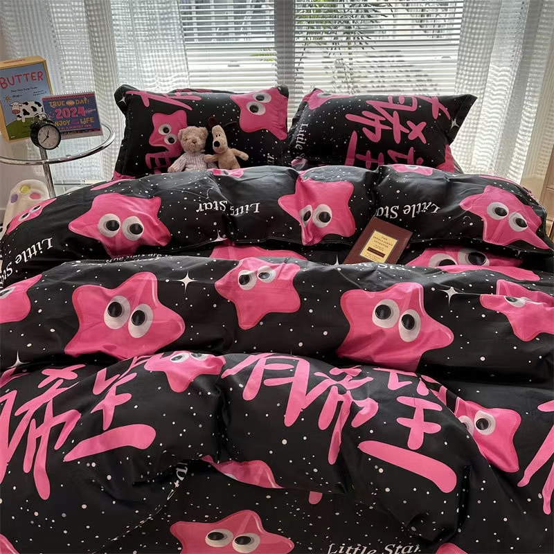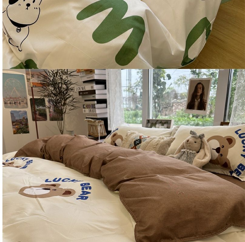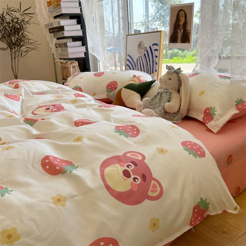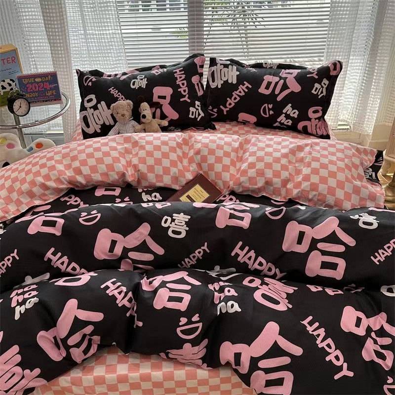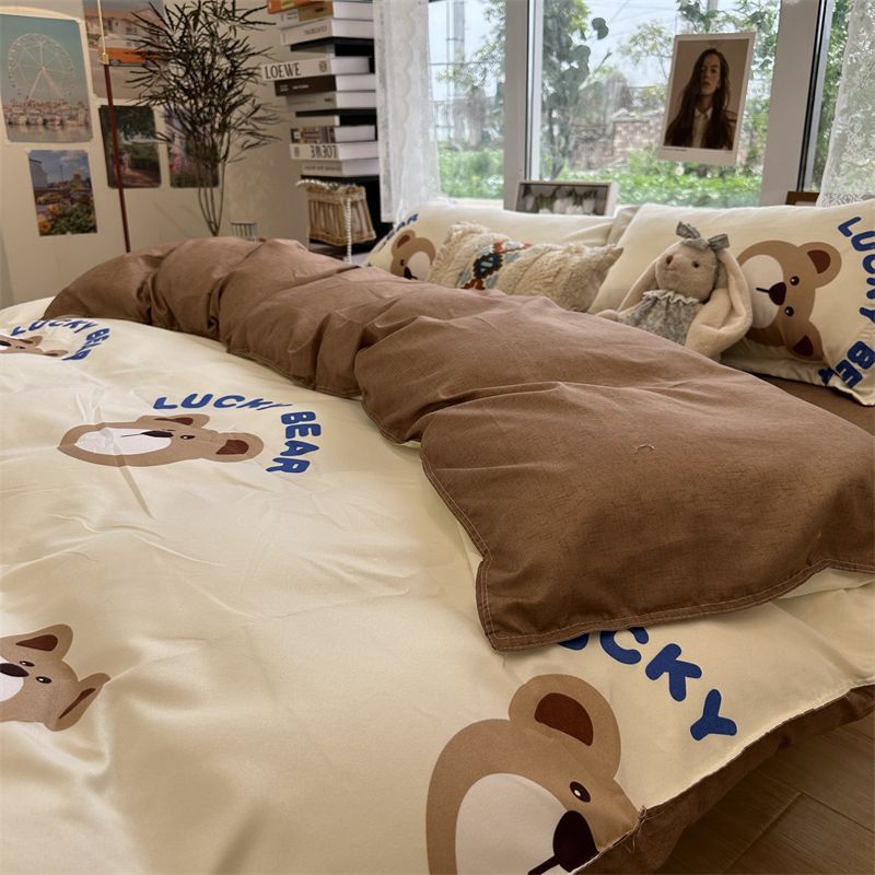 ins字母小熊熊床上简约四件套水洗棉床单被套卡通学生宿舍三件套
