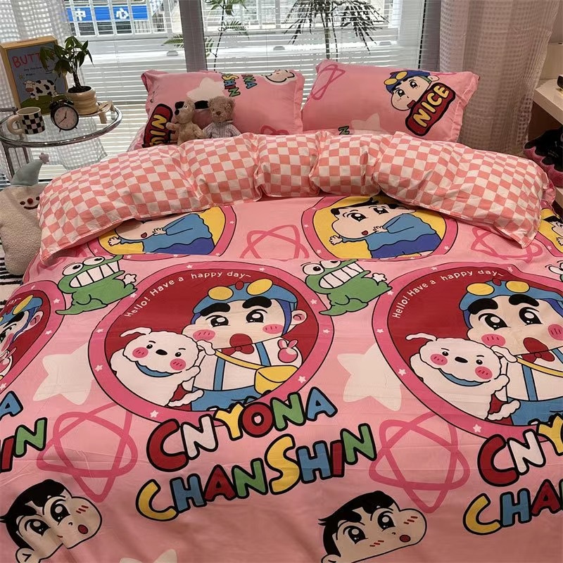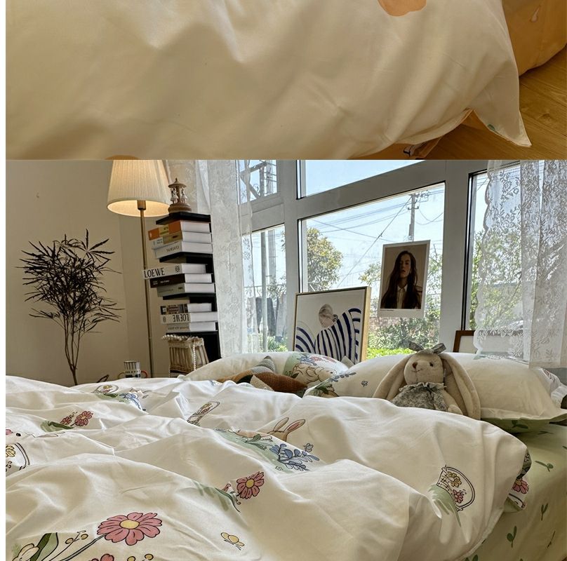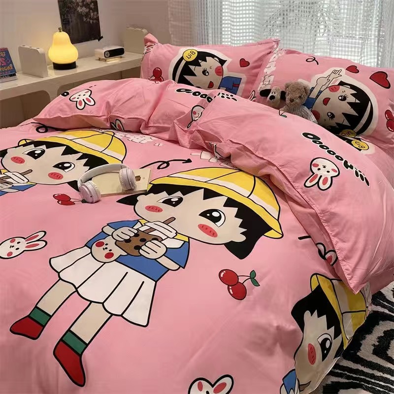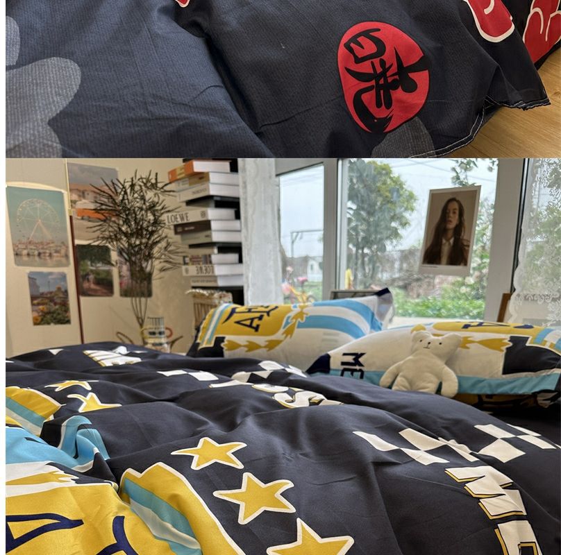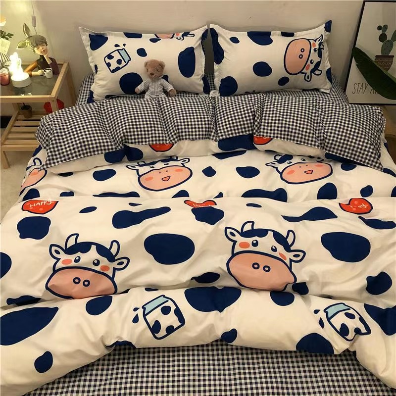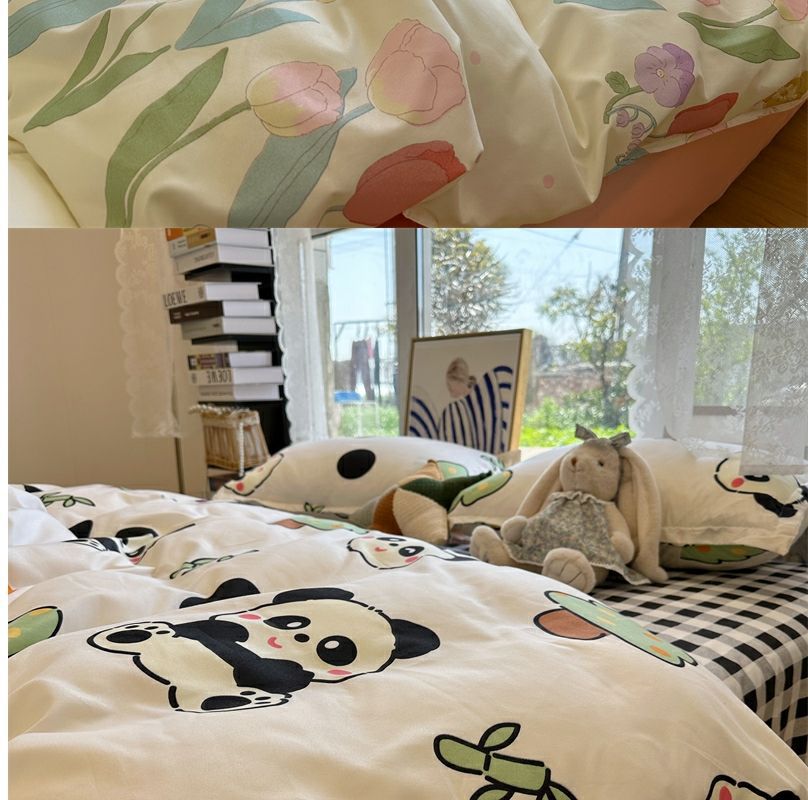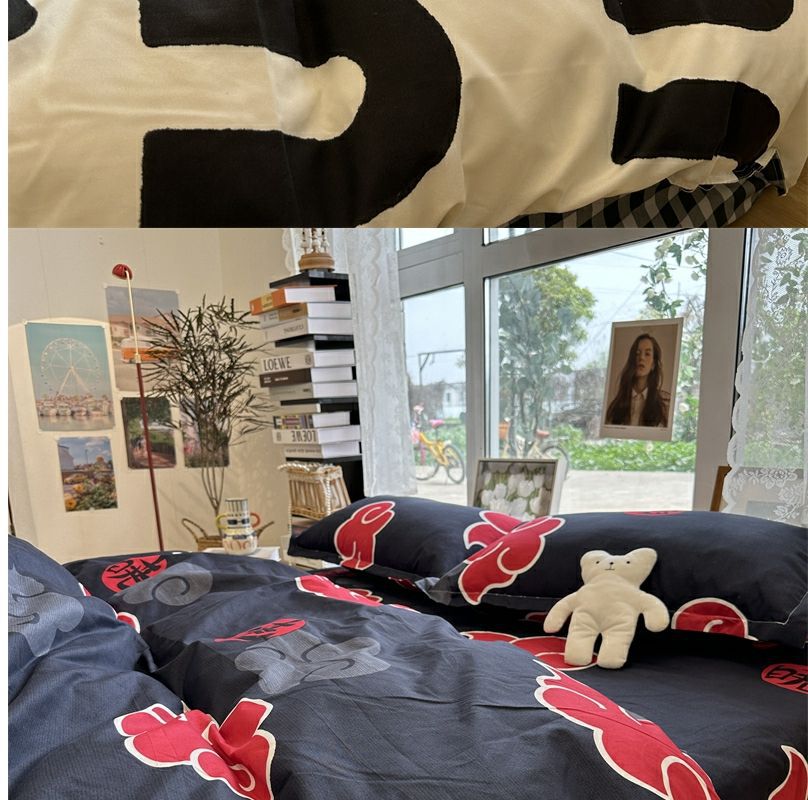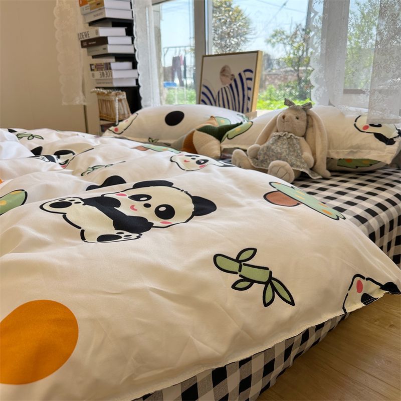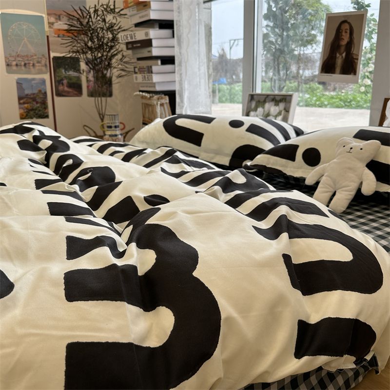 ins字母小熊熊床上简约四件套水洗棉床单被套卡通学生宿舍三件套