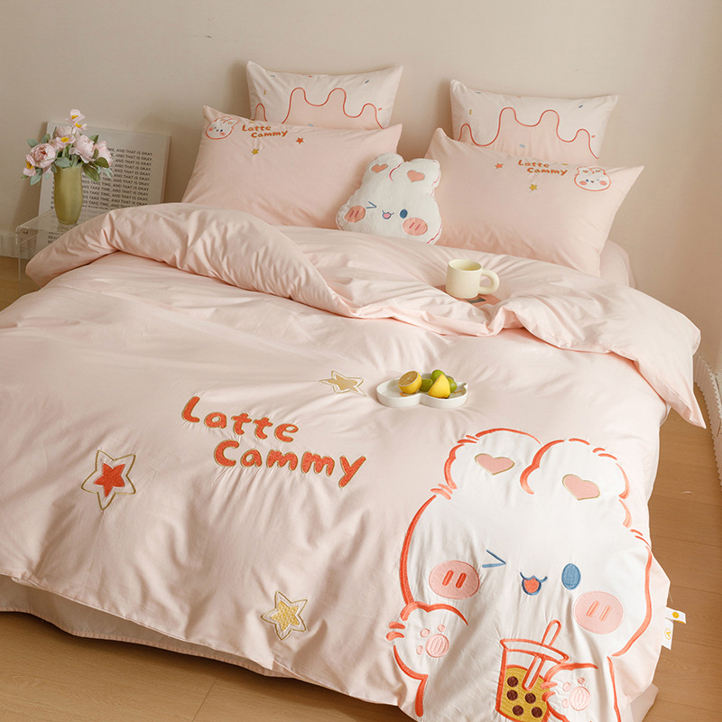 卡通A类80支全棉四件套4儿童贴布绣床单笠被套纯棉宿舍三件套批发
