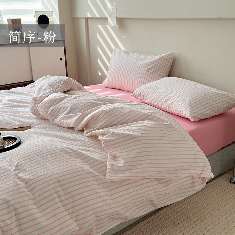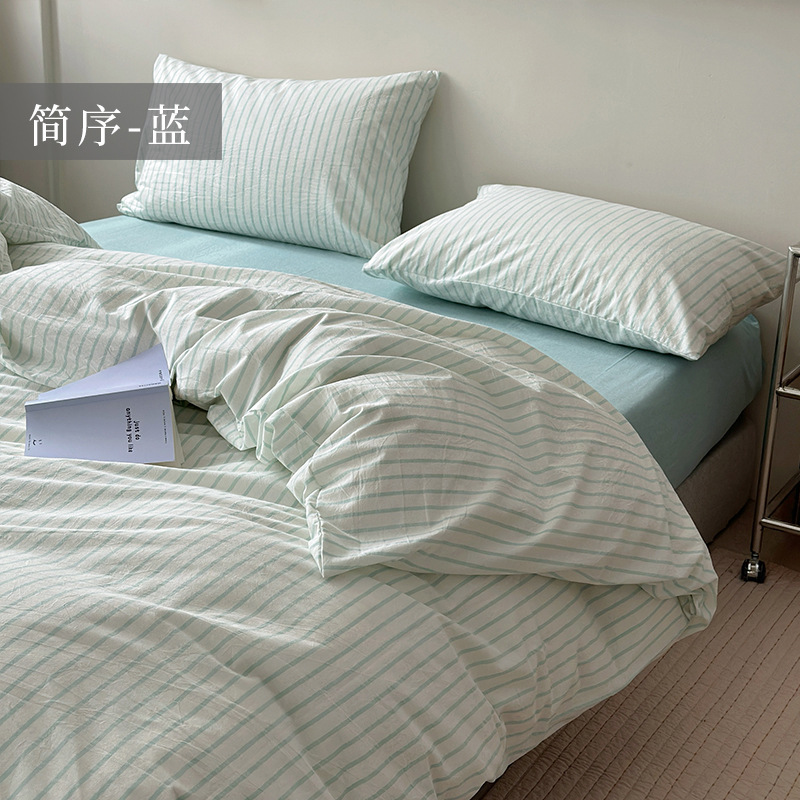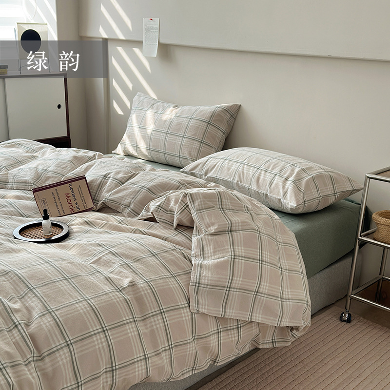 无印全棉四件套纯棉色织水洗棉简约良品床品被套格子纯色床单床笠