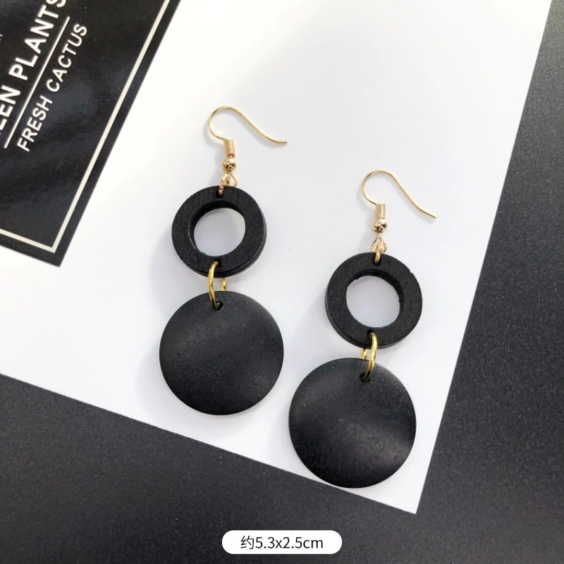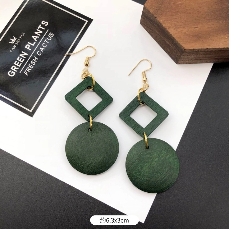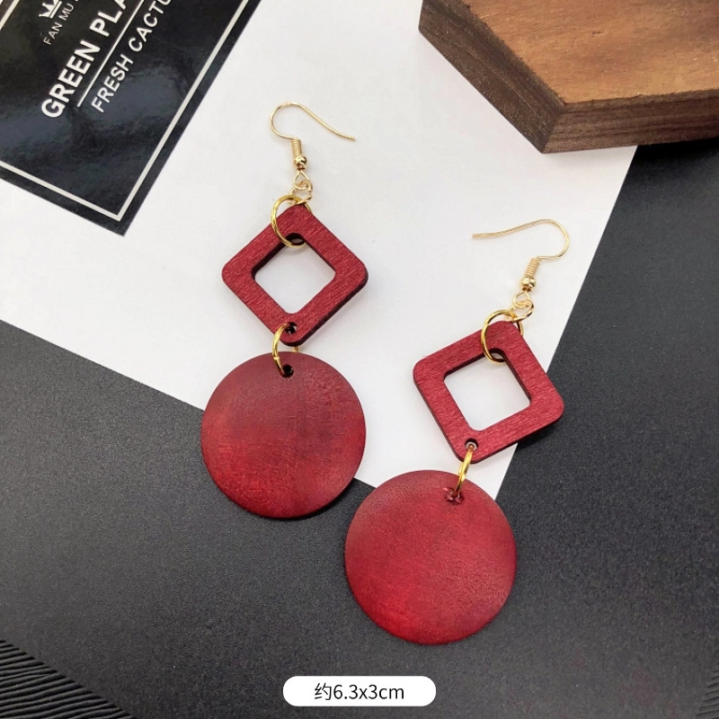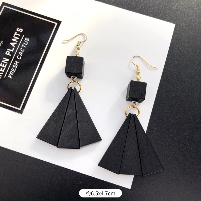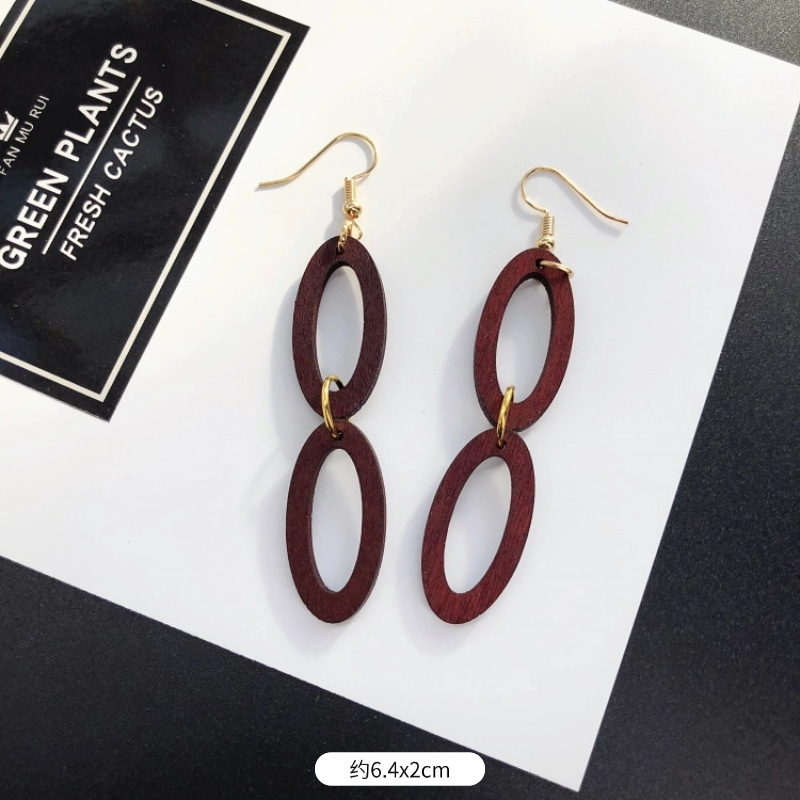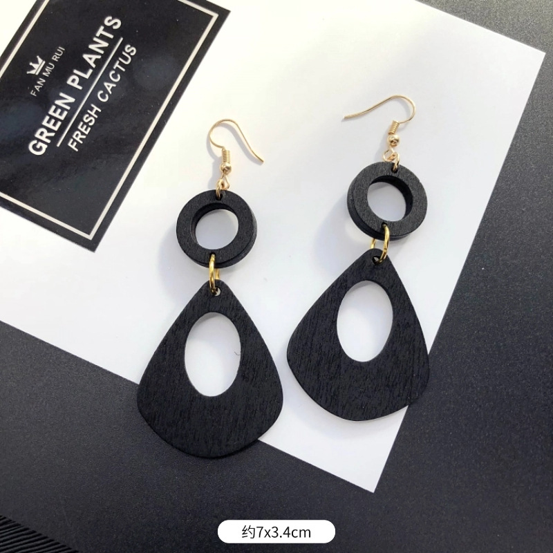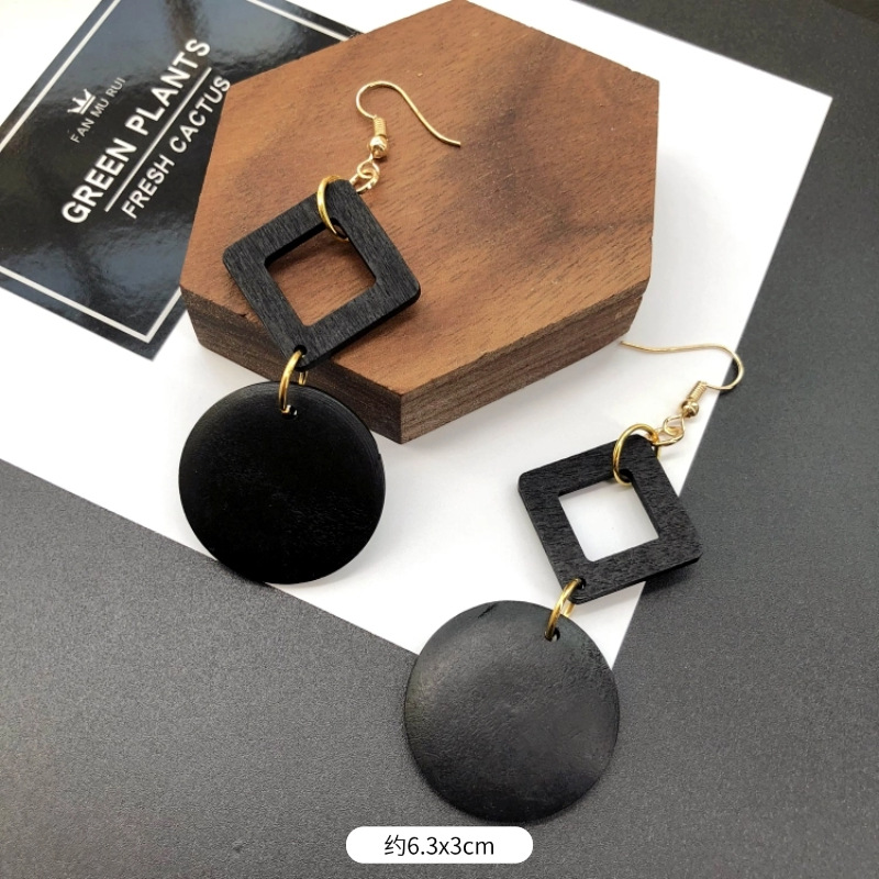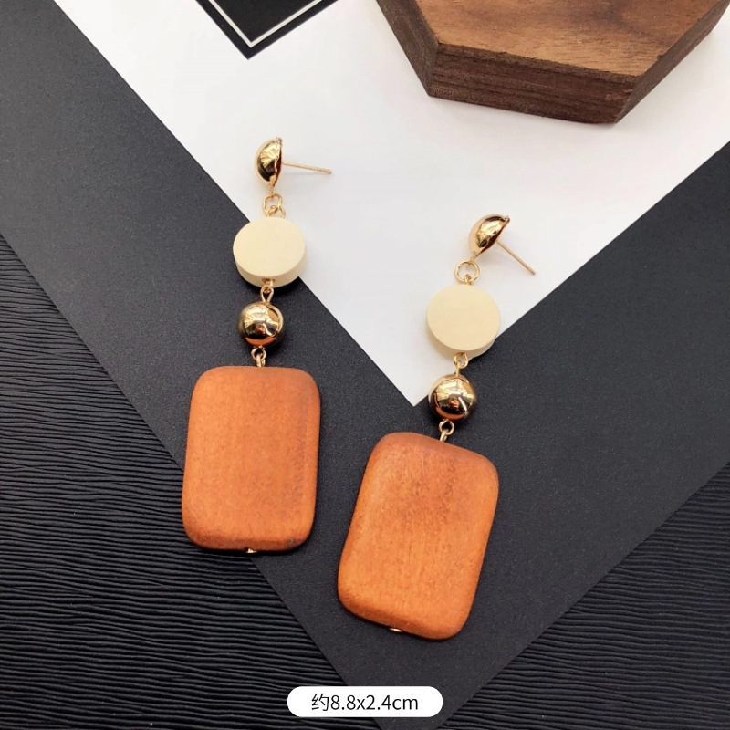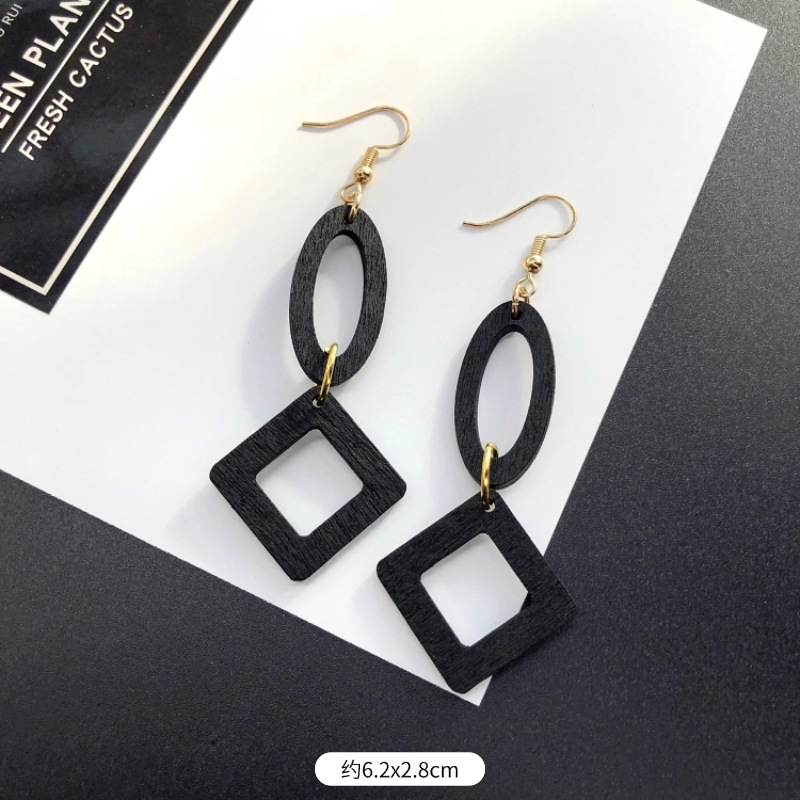 韩国复古百搭个性几何木头耳环轻奢简约女时尚长款流苏气质耳饰品