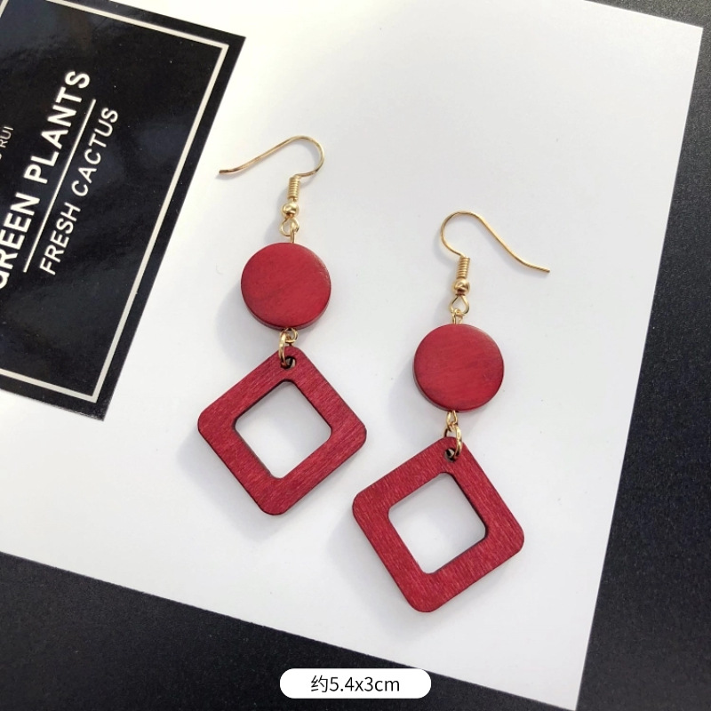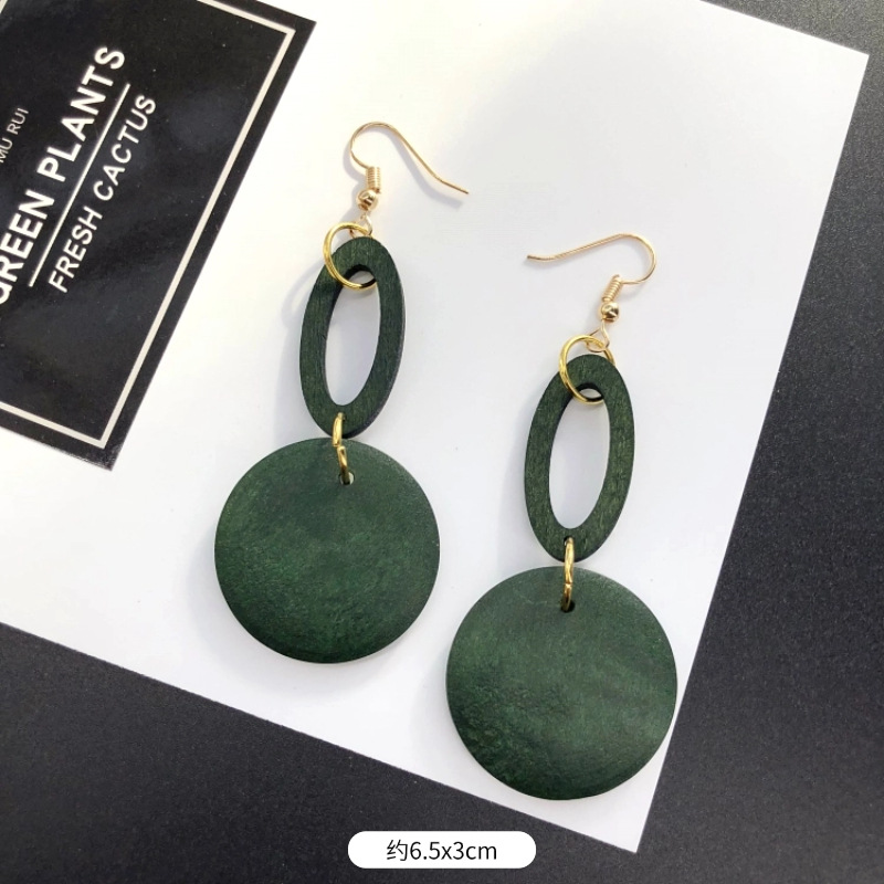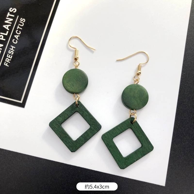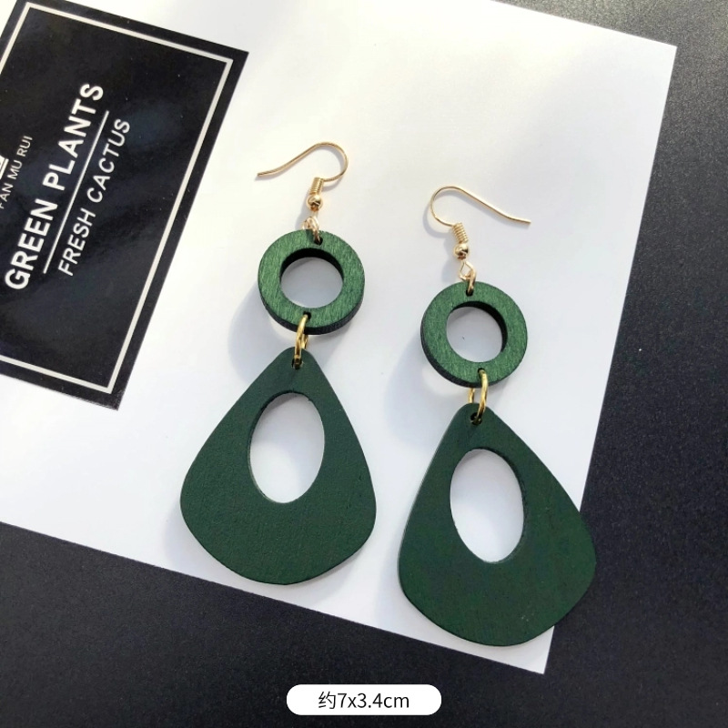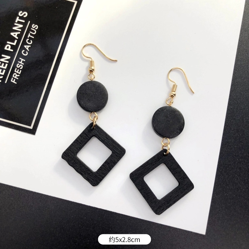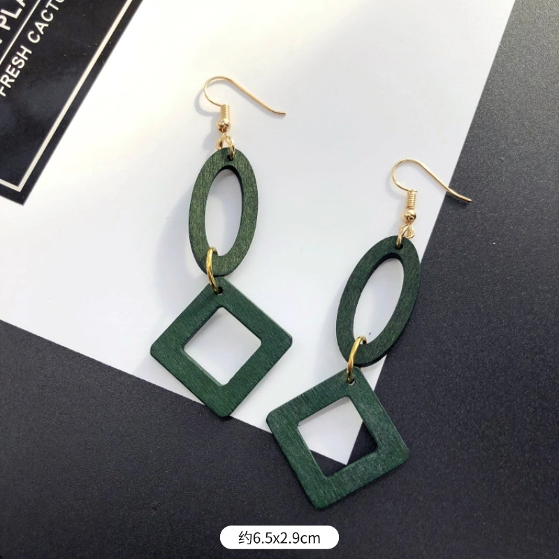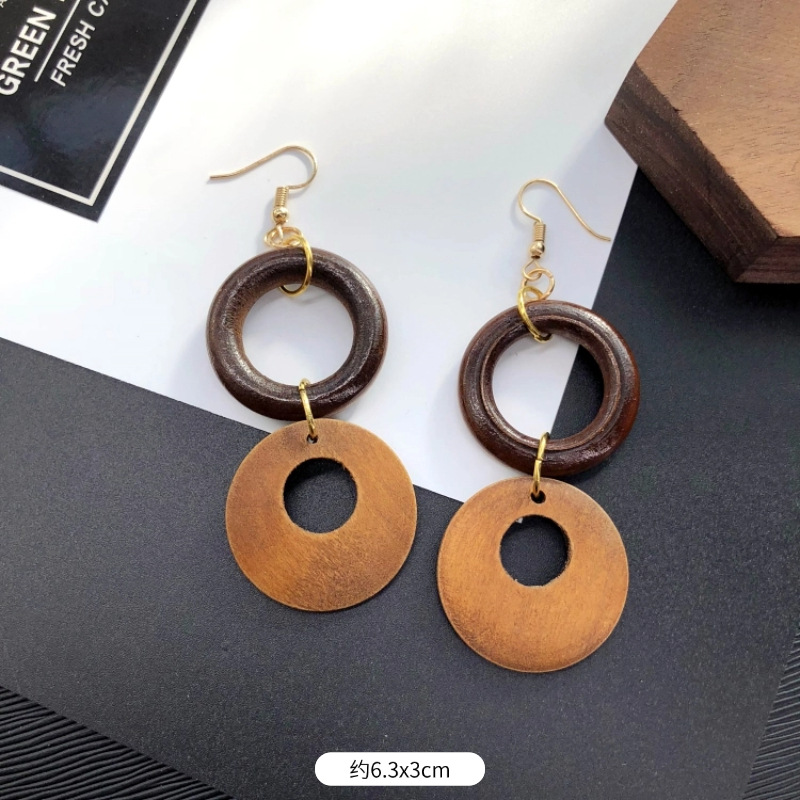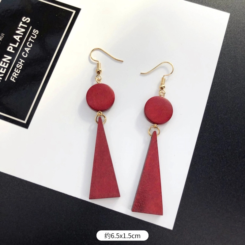 韩国复古百搭个性几何木头耳环轻奢简约女时尚长款流苏气质耳饰品