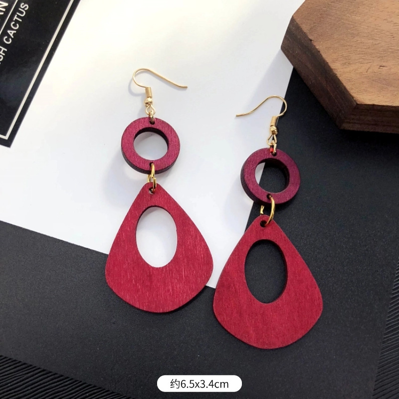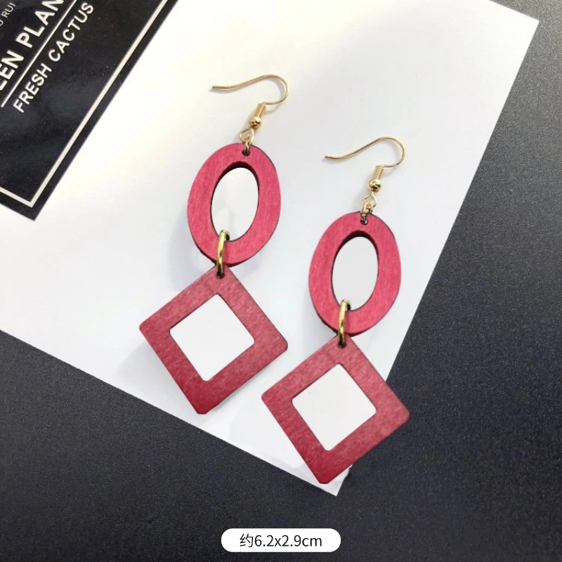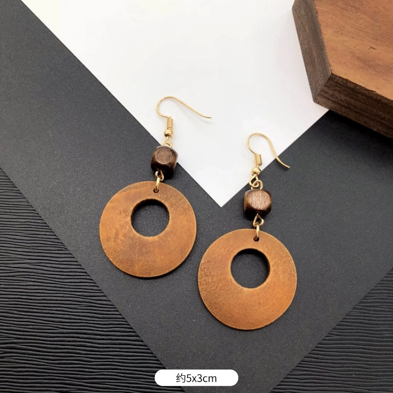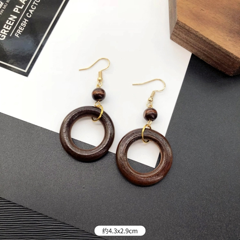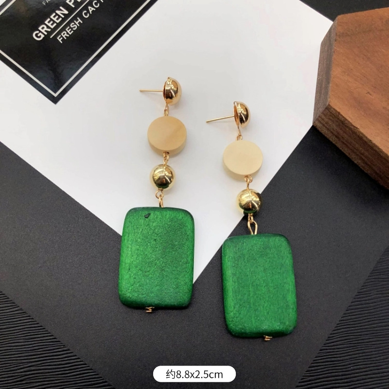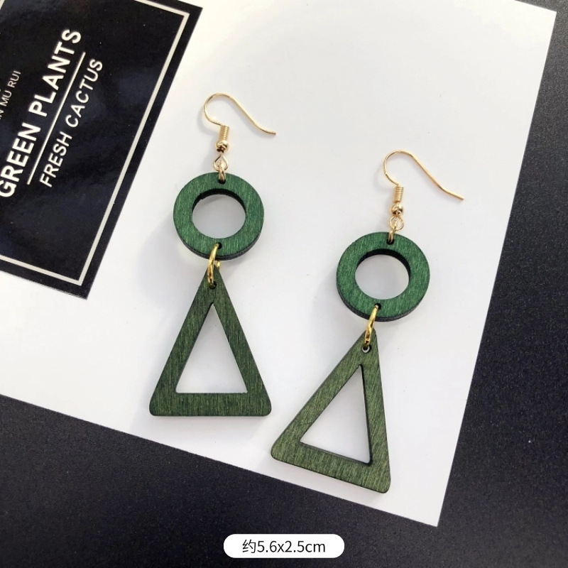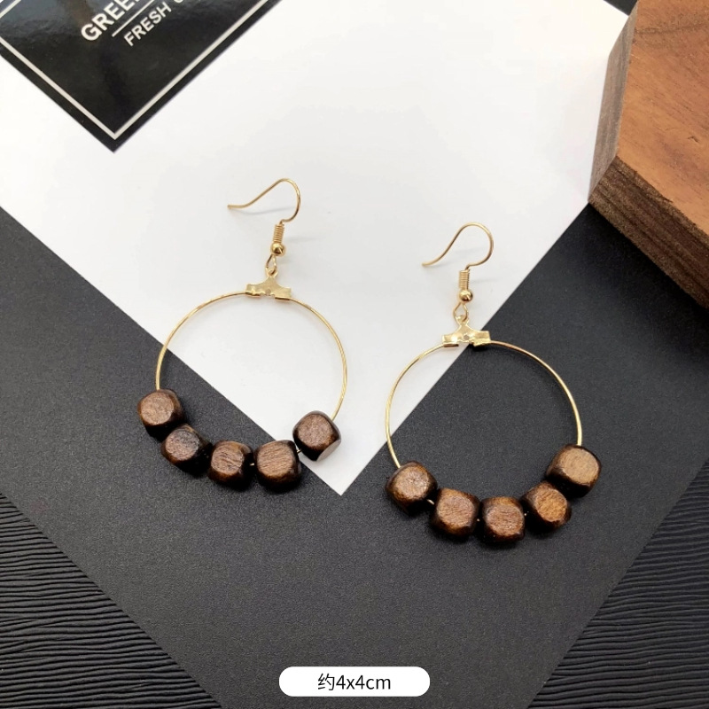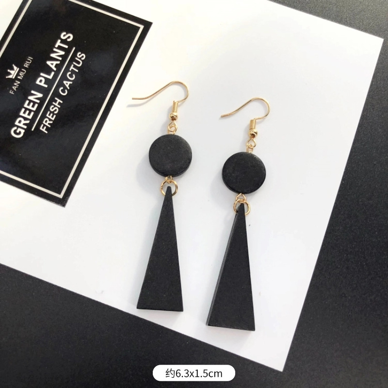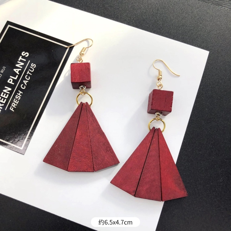 韩国复古百搭个性几何木头耳环轻奢简约女时尚长款流苏气质耳饰品