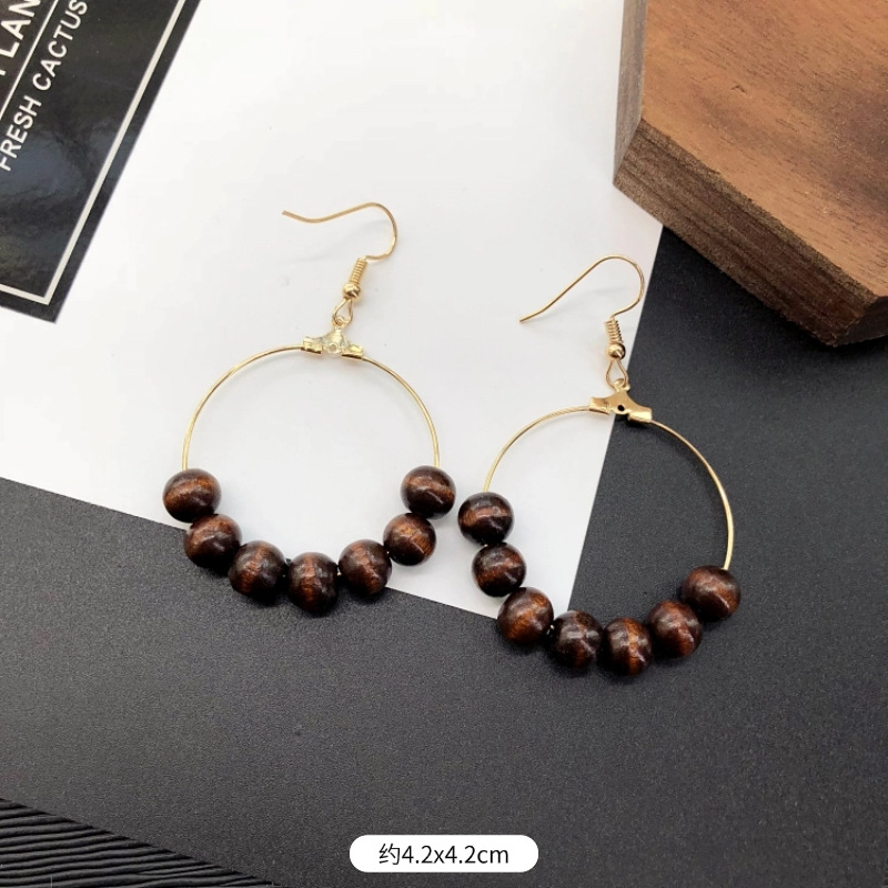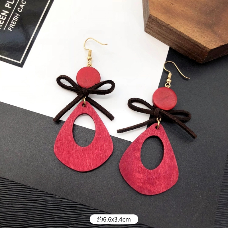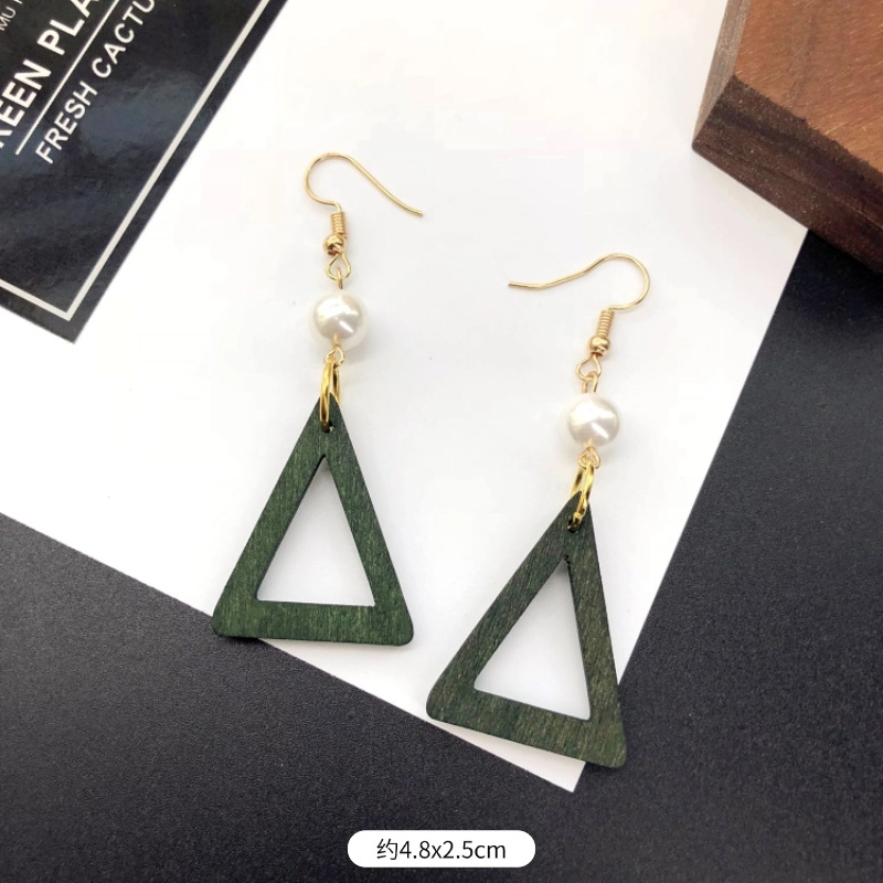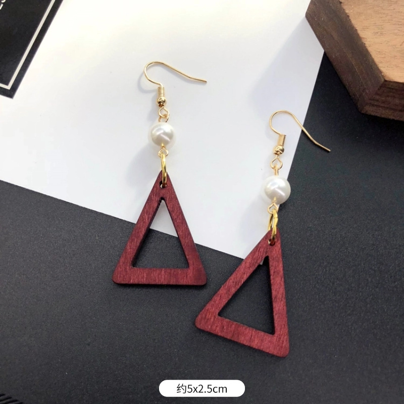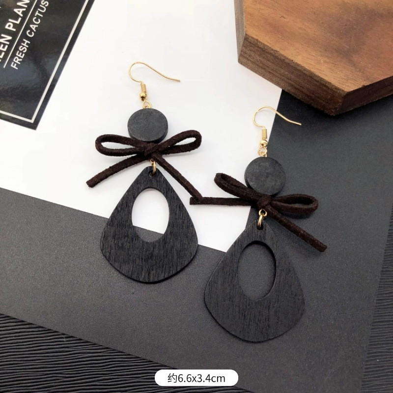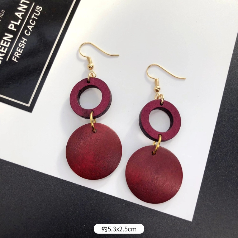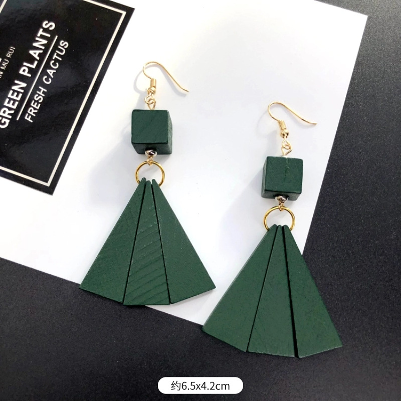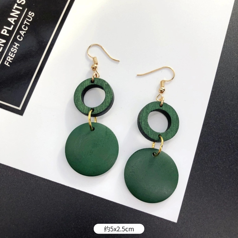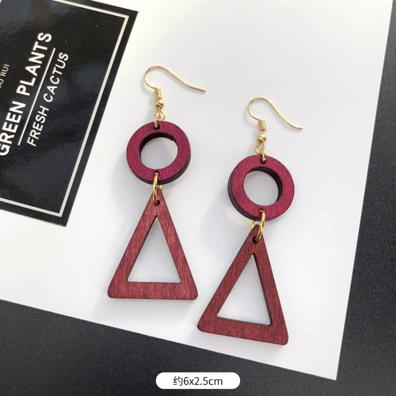 韩国复古百搭个性几何木头耳环轻奢简约女时尚长款流苏气质耳饰品