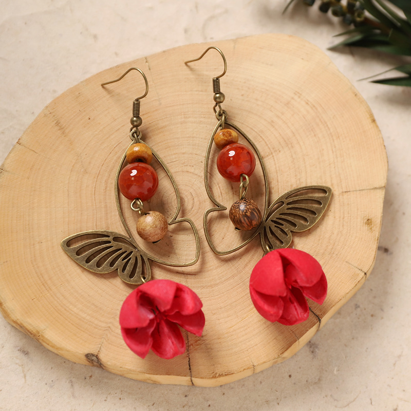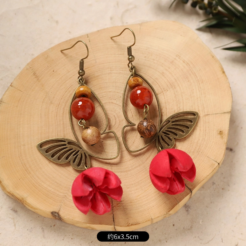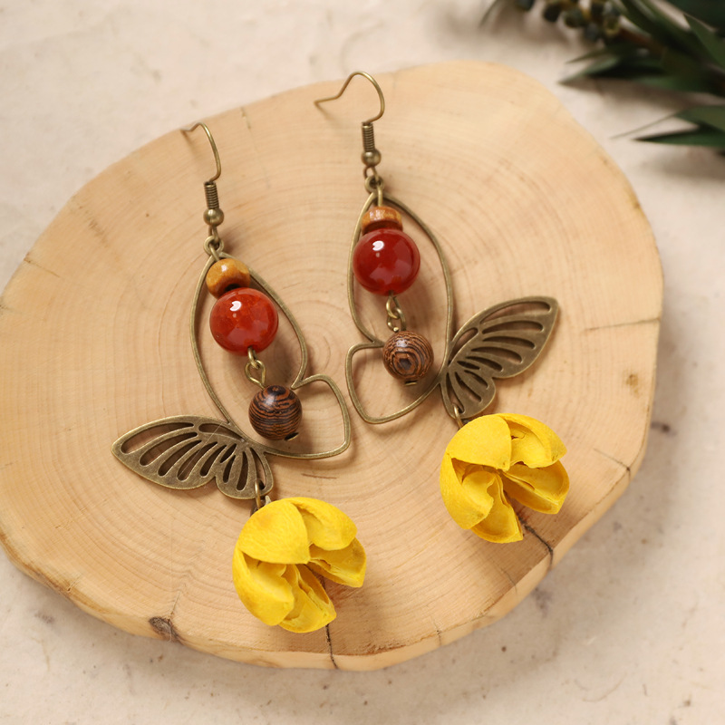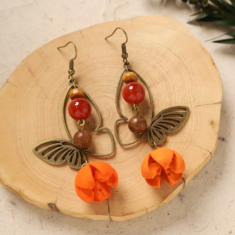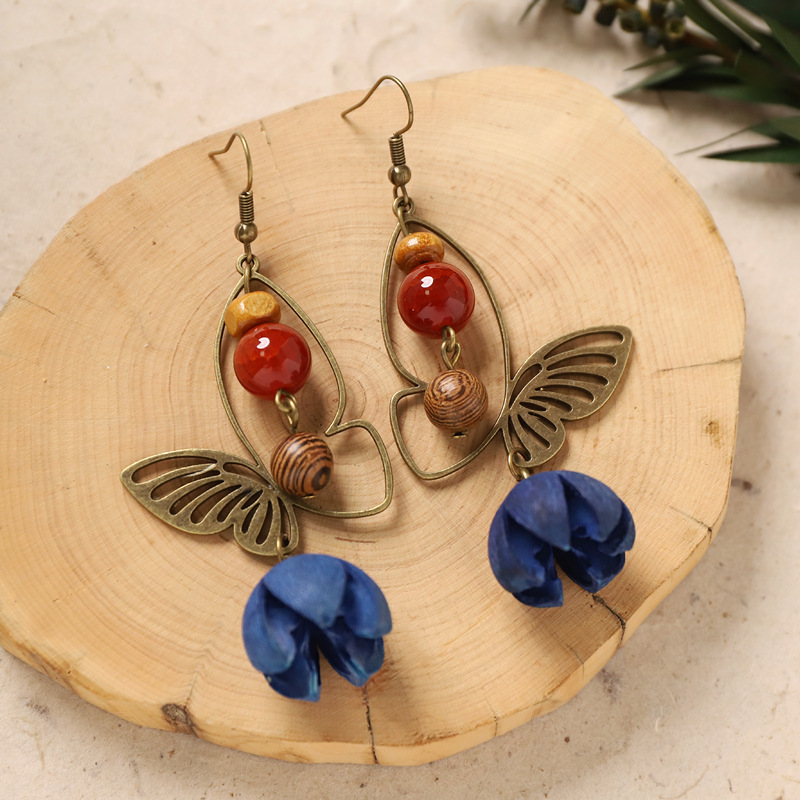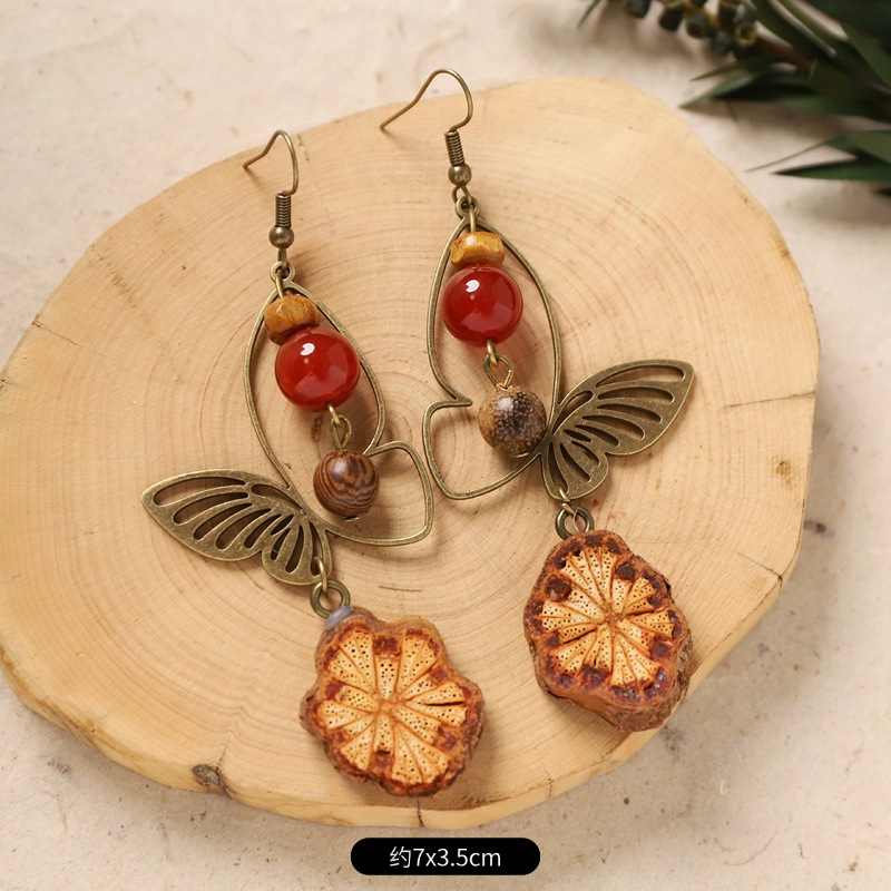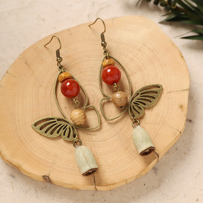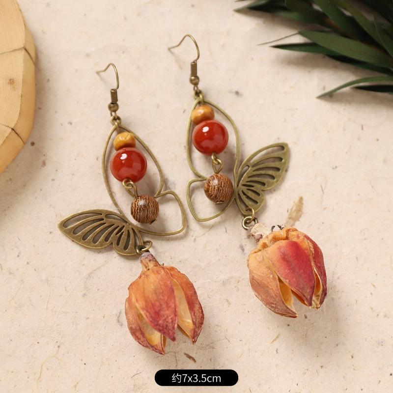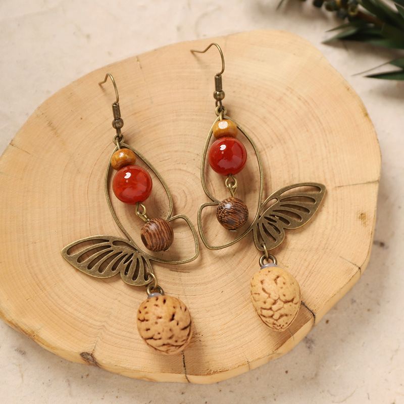 原创蝴蝶植物果实耳环森系复古小众设计橡果文艺民族风长款耳饰女