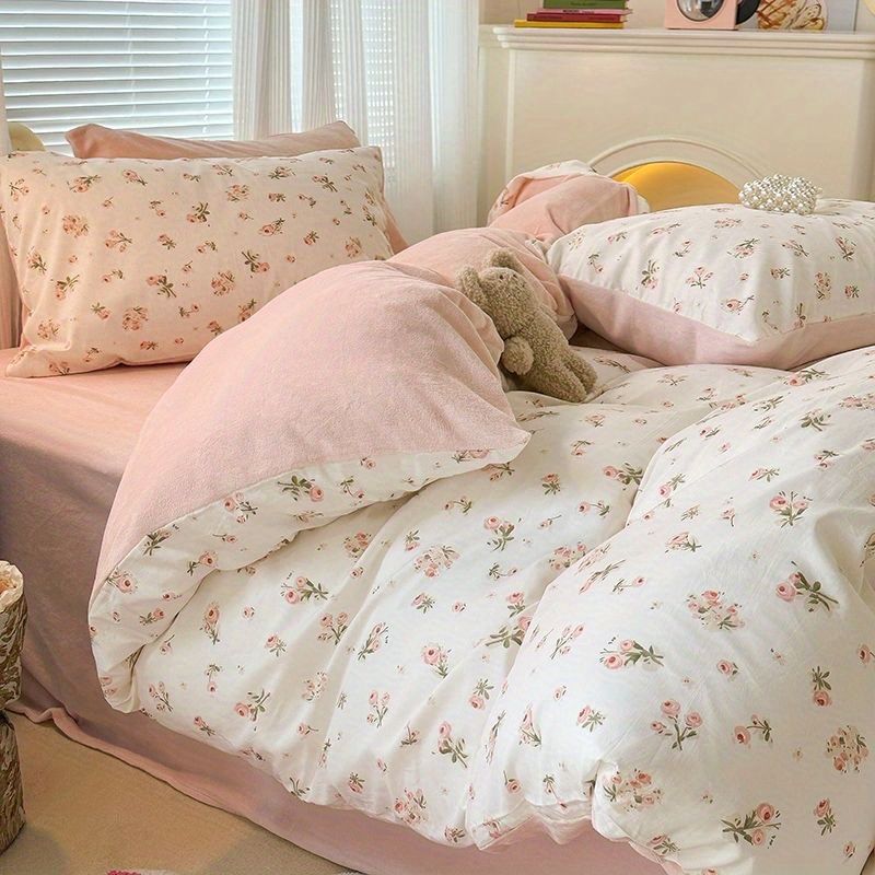 唯美粉黛款春夏柔软款水洗棉床上四件套大学生宿舍床单被套三件套
