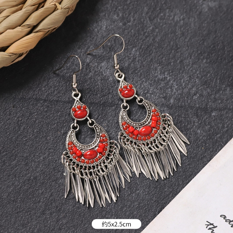 波西米亚民族风耳环复古个性简约长款流苏耳坠女高级感度假风耳饰
