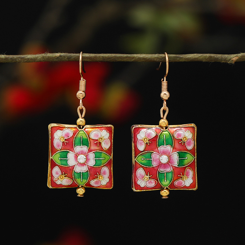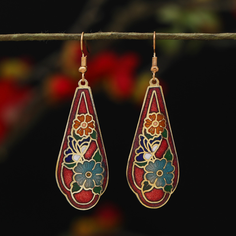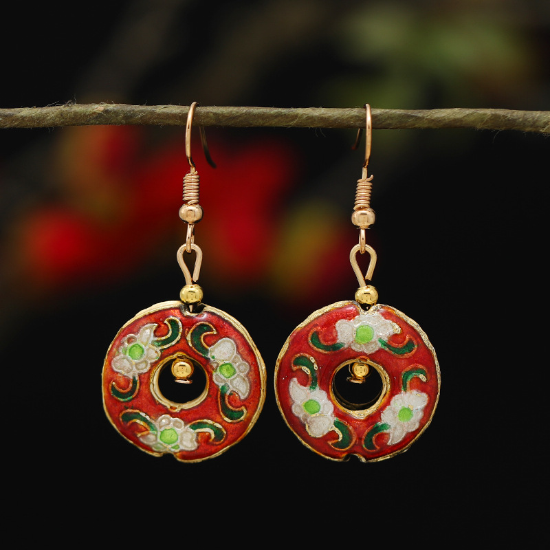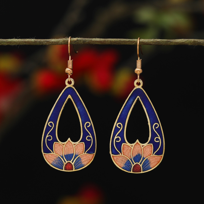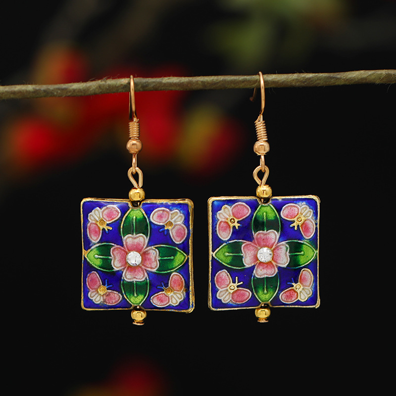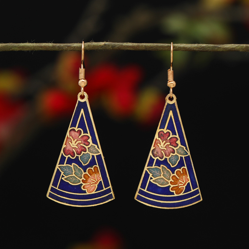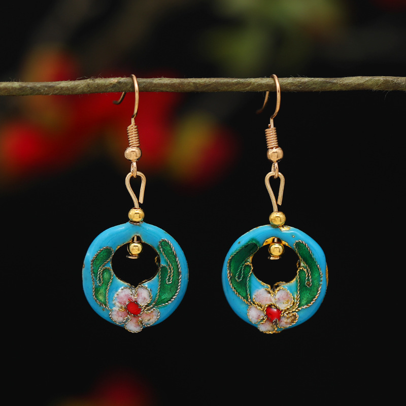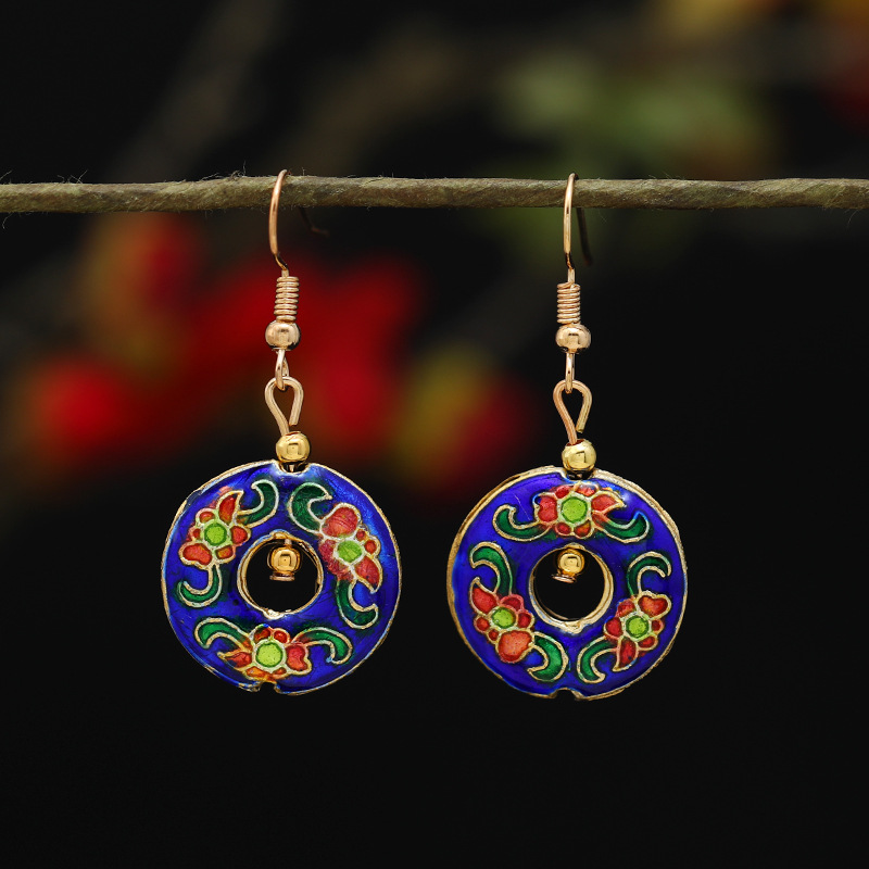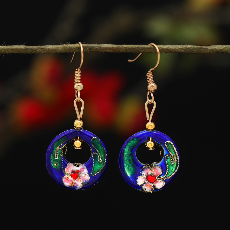 中式复古景泰蓝珐琅耳环女古典气质简约花朵耳坠小众设计国风耳饰