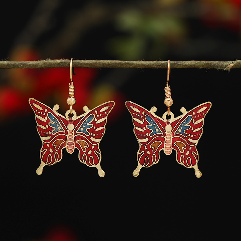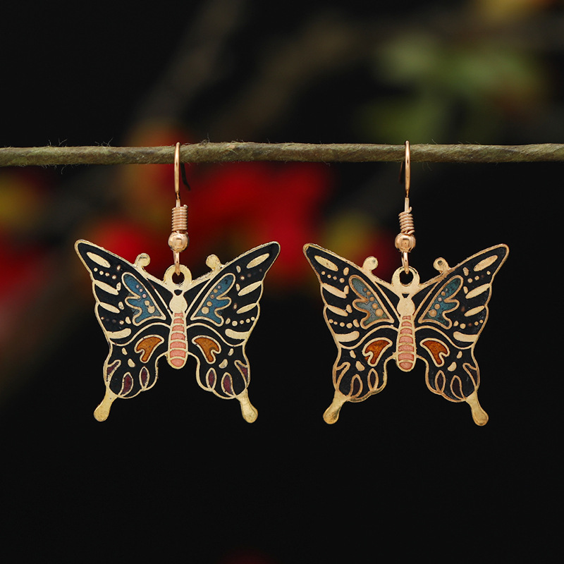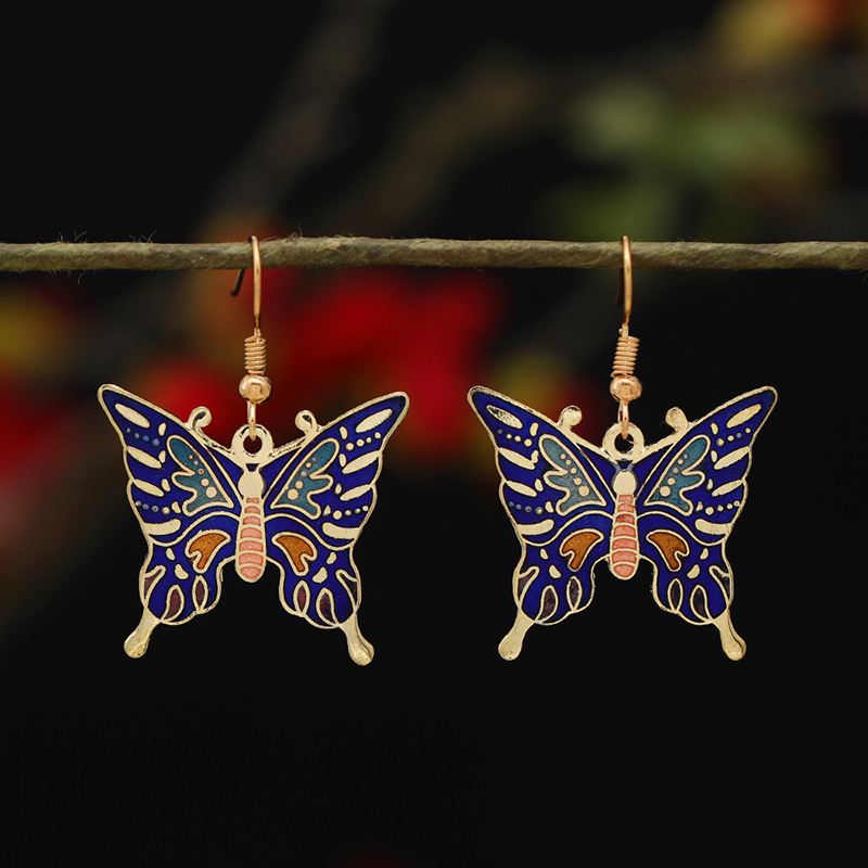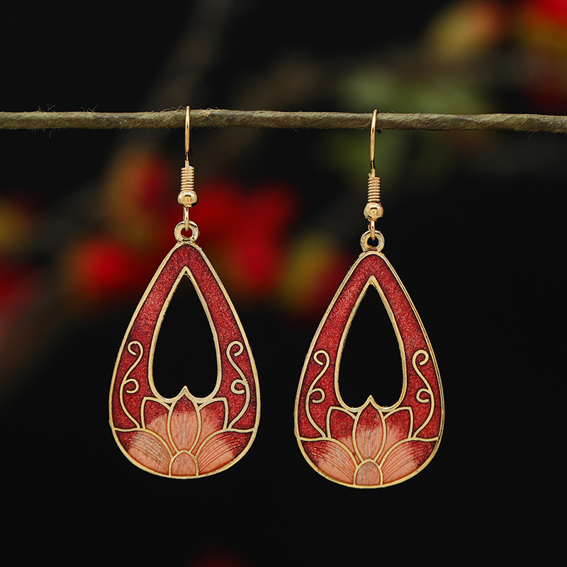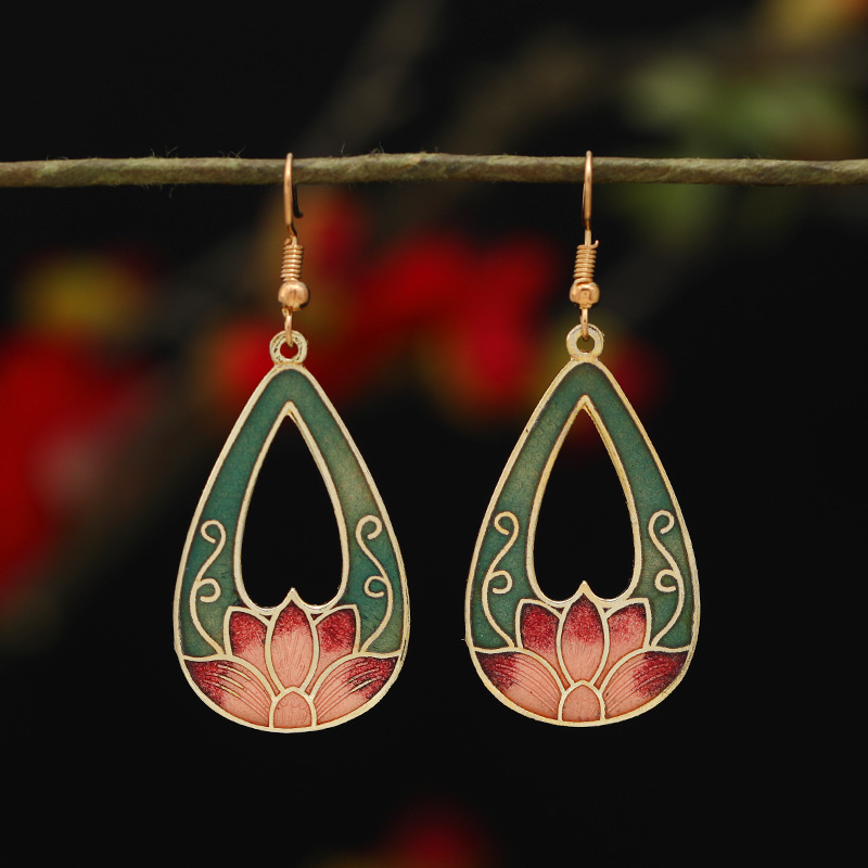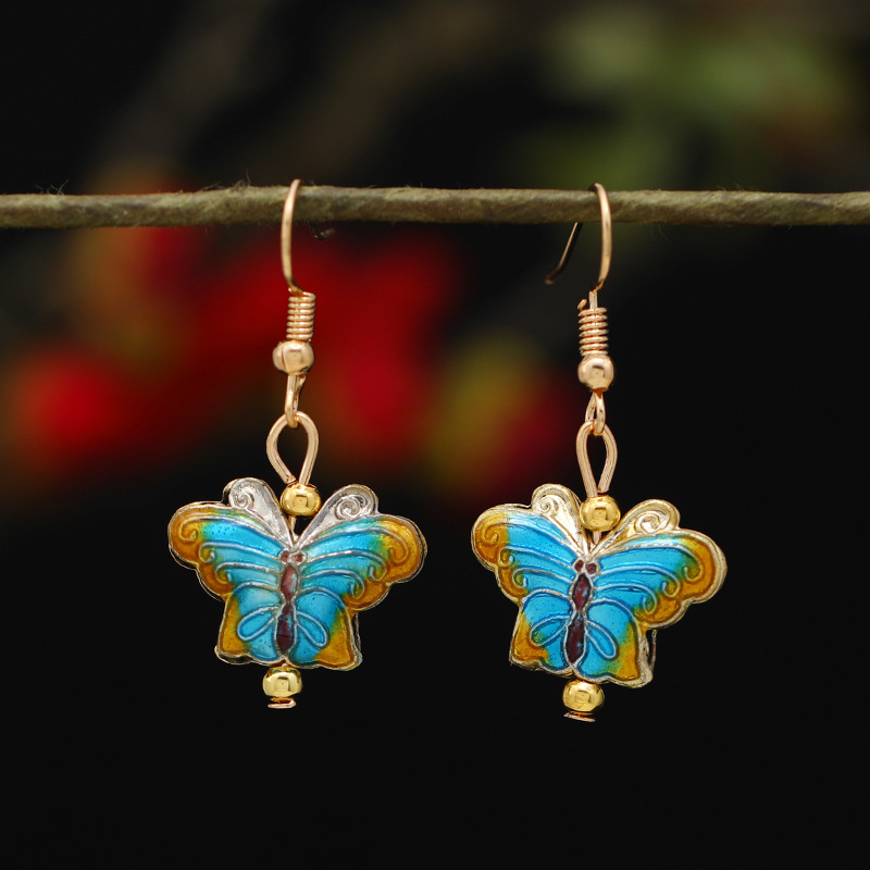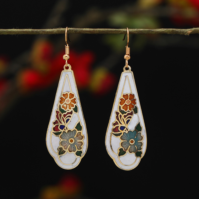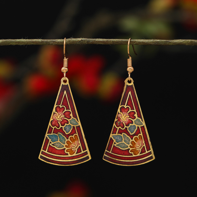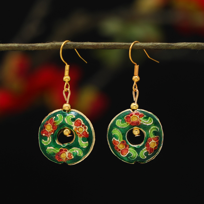 中式复古景泰蓝珐琅耳环女古典气质简约花朵耳坠小众设计国风耳饰