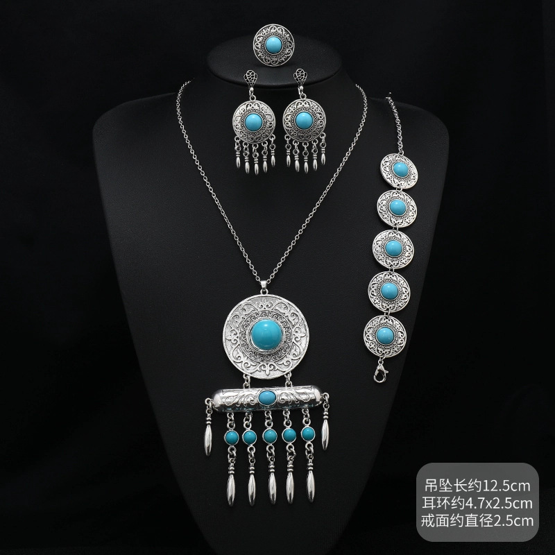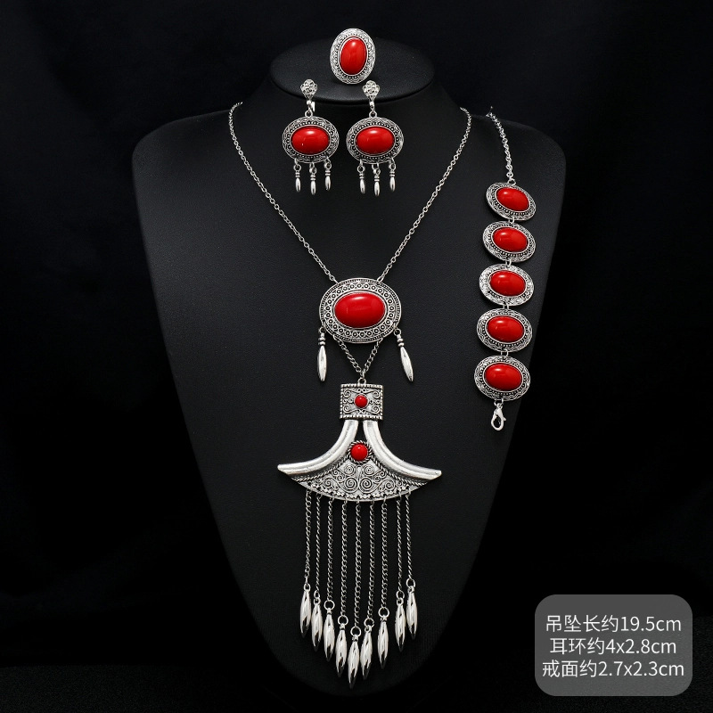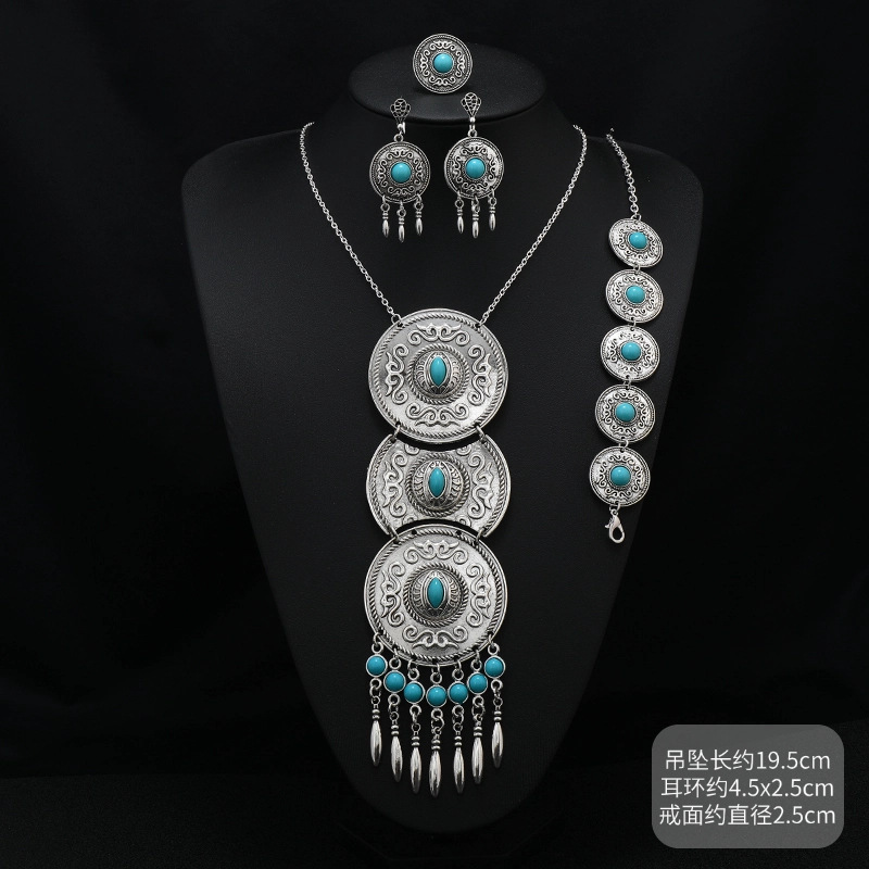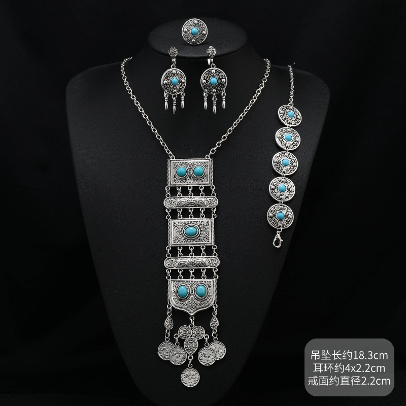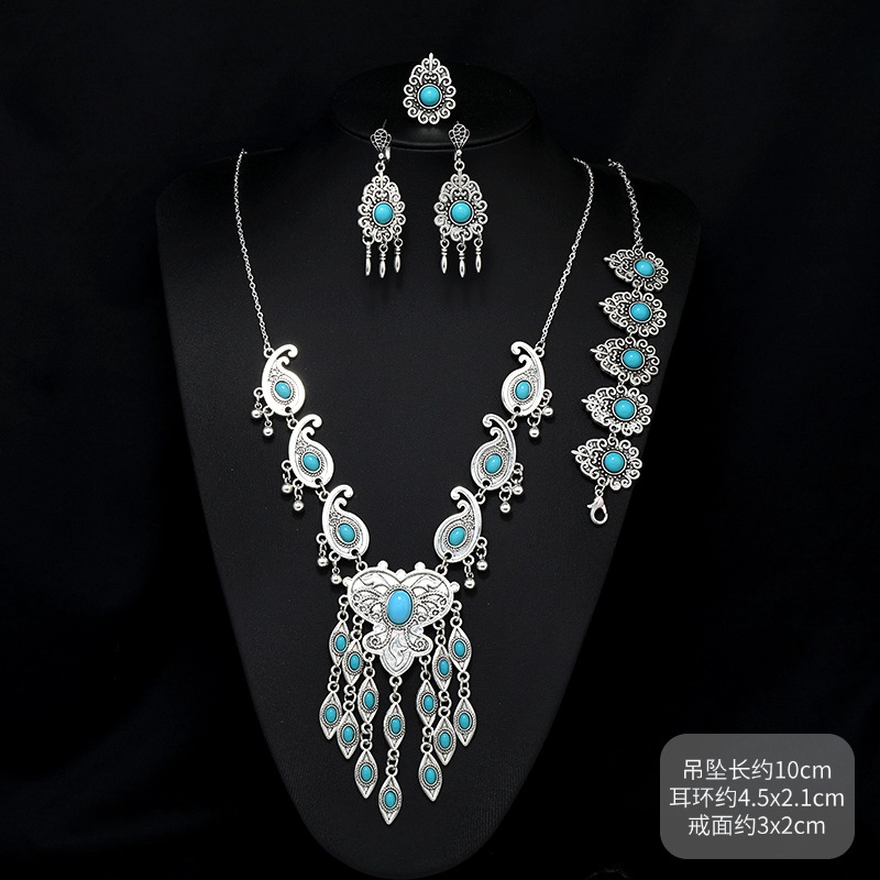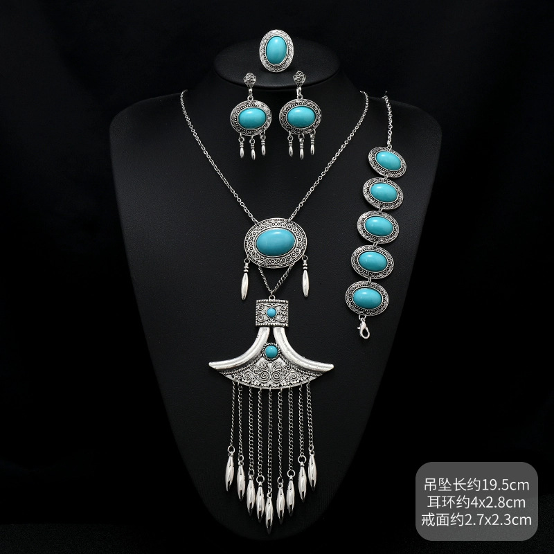 欧美民族风长款流苏项链复古异域波西米亚度假手链耳环旅拍套装女